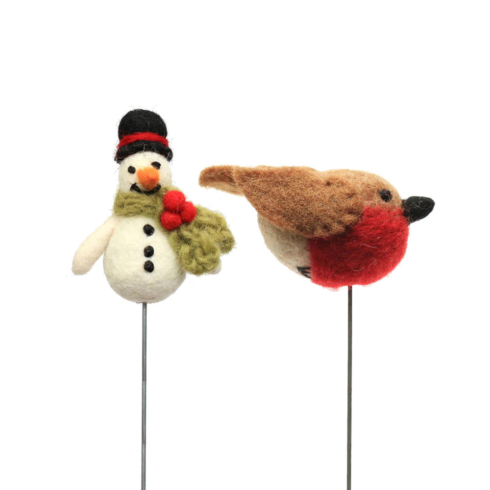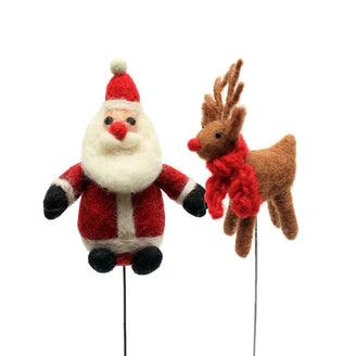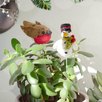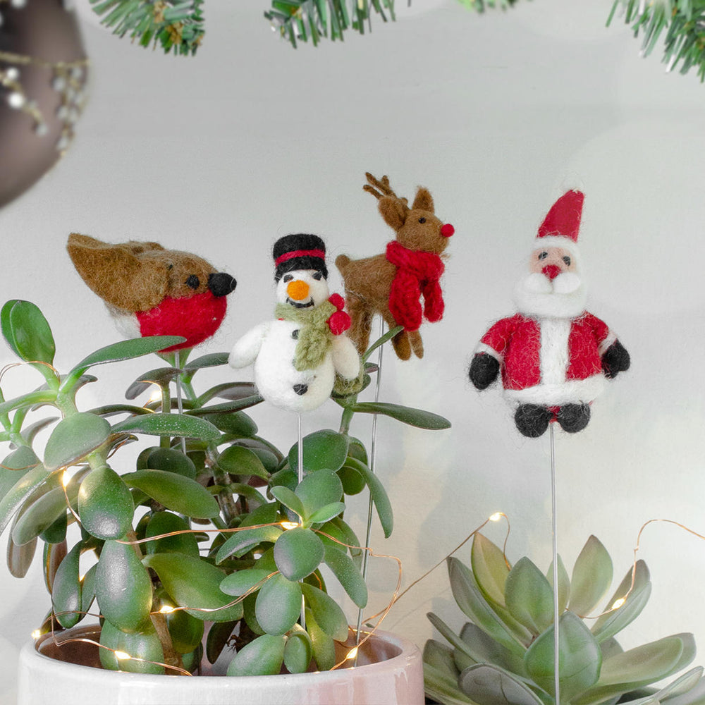 Add some seasonal fun to your indoor houseplants with these pairs of delightful felt mini Christmas characters. Each felt Christmas character is on a metal wire stick which can be popped into your plant to add little seasonal cheer and jollity to your house plants.