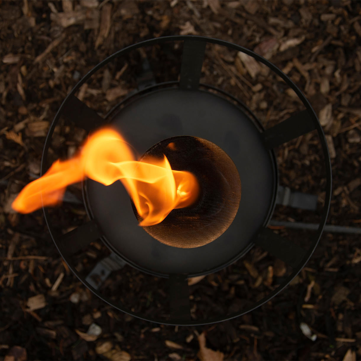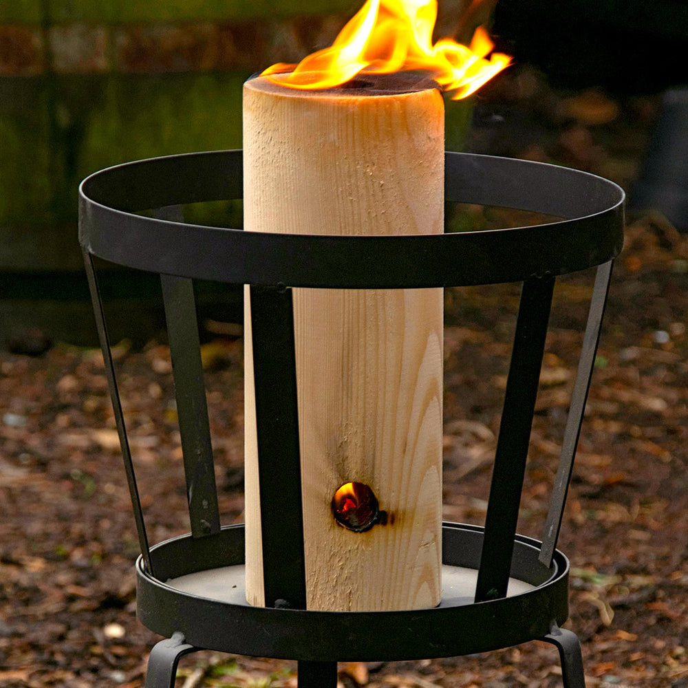 The Finnish fire-pit candles (sometimes called the Swedish log candle), are specially drilled and filled large, upright logs to create a large natural-style torch.