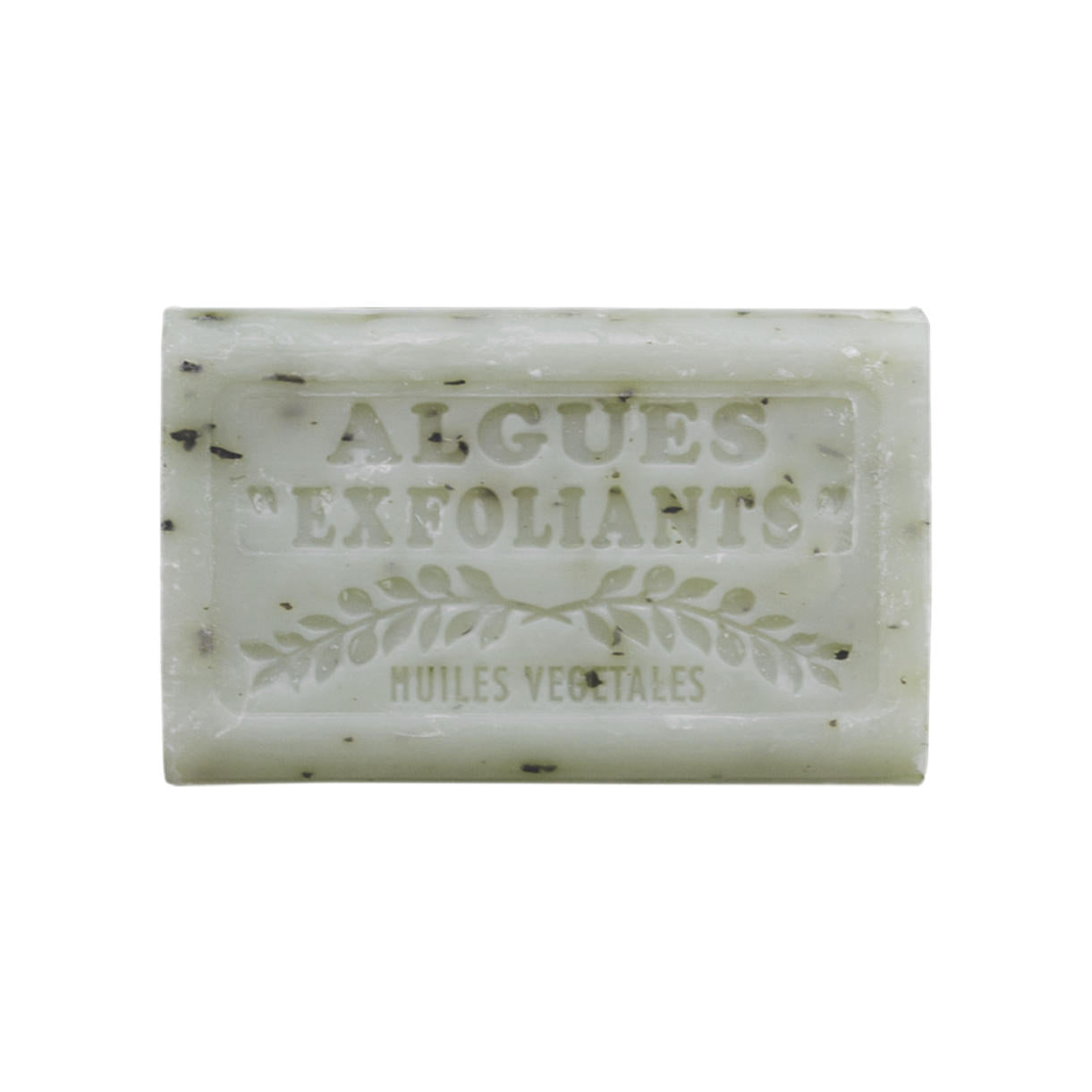 Beautiful natural Marseilles olive oil based vegetable soap made with seaweed and olive kernel pumice and fragranced with olive oil.