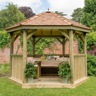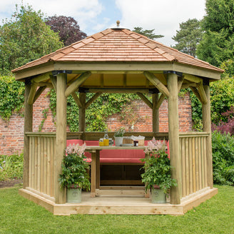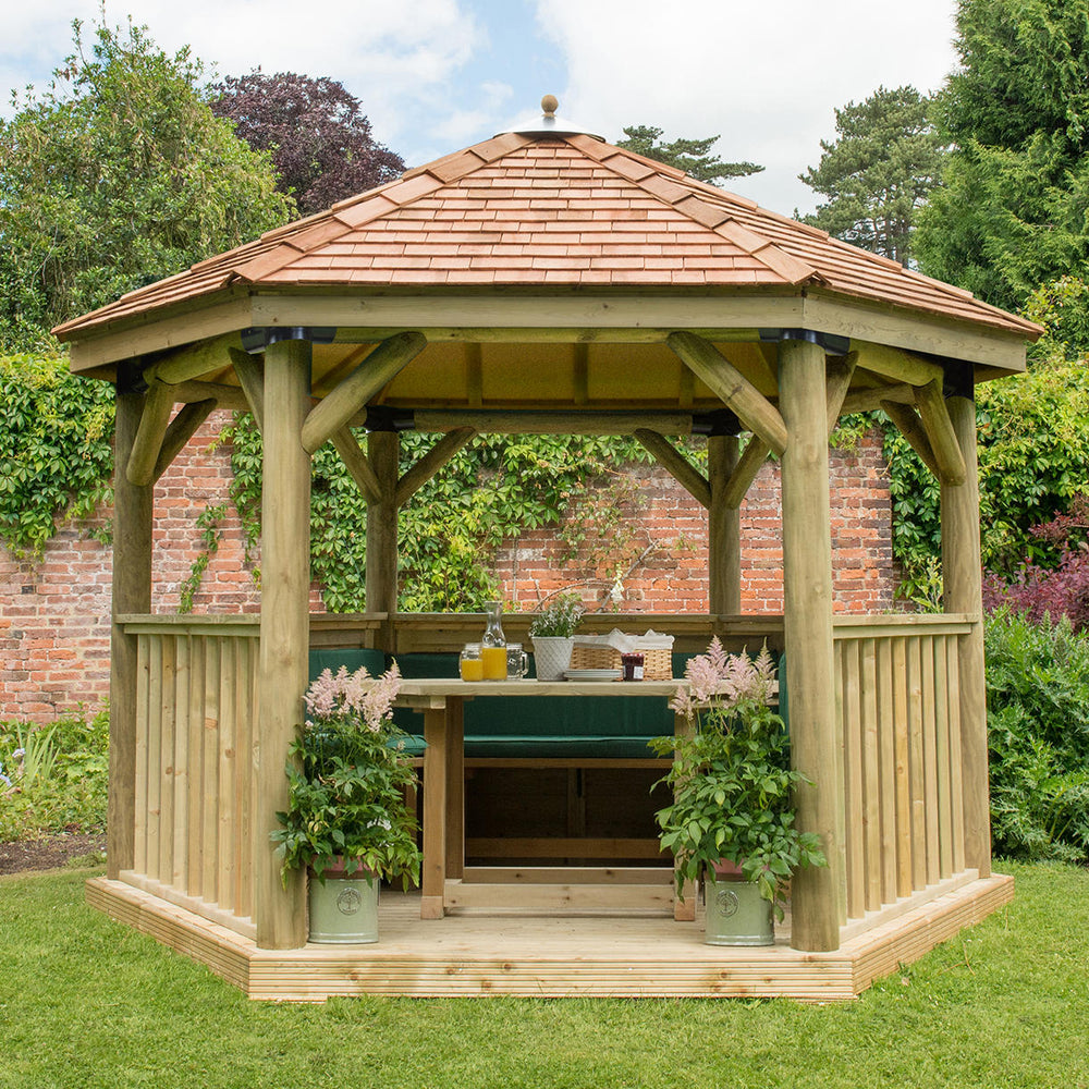 This compact and elegant 3.6m Gazebo is a perfect fit for a variety of garden spaces, seating up to 10 adults.