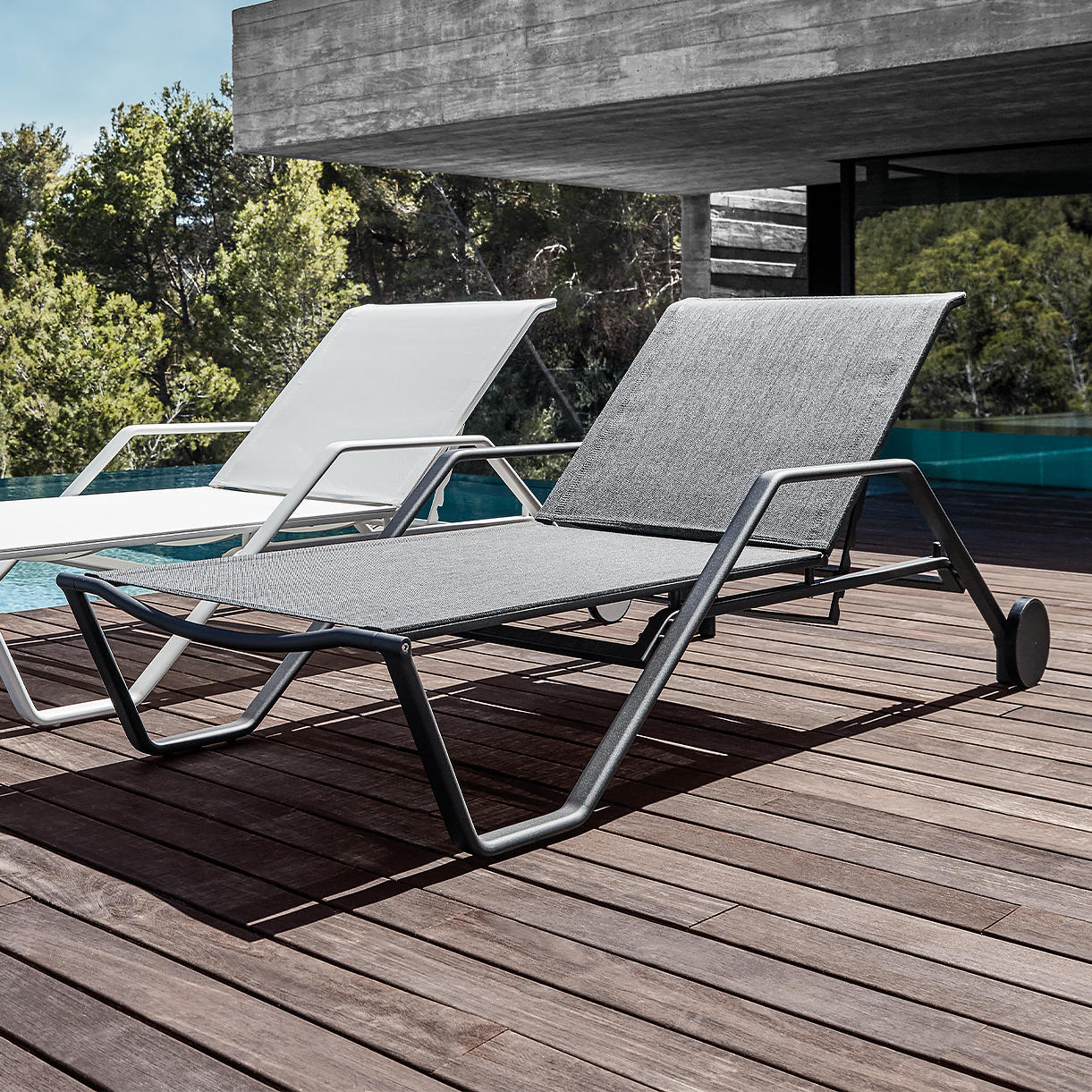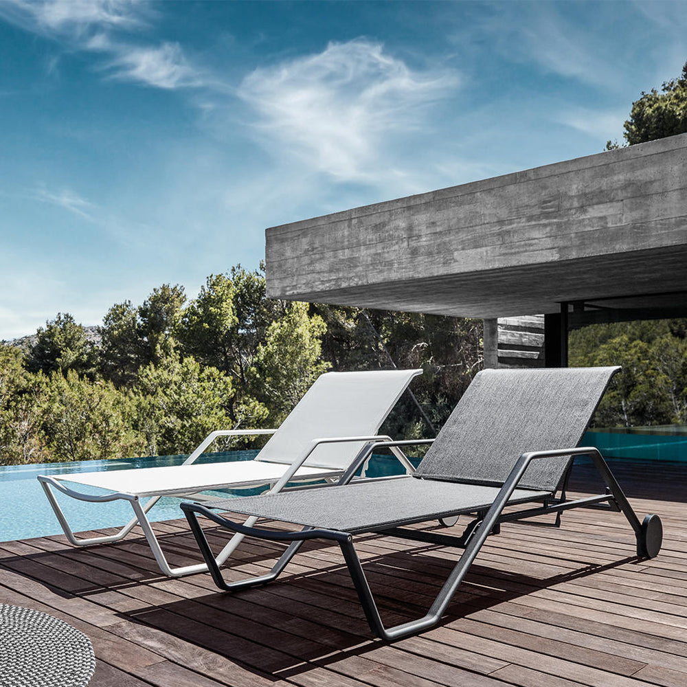 The 180 stacking outdoor loungers are manufactured from aluminium, a lightweight and tough metal with a excellent strength and corrosion resistance, making it an ideal material for outdoor furniture.