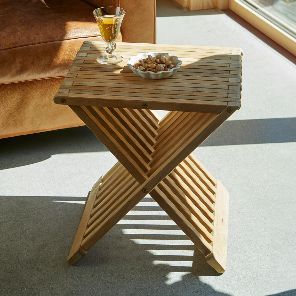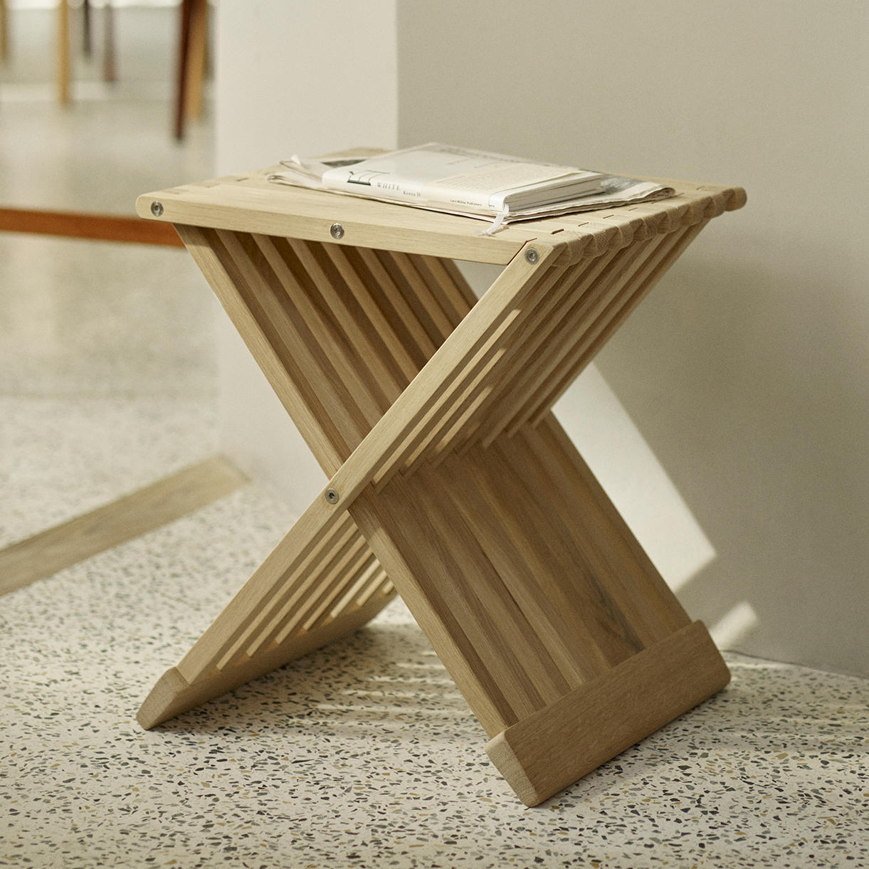 Available in either slatted teak or oak, the Fionia stool is one of the most versatile pieces of furniture we have found.