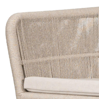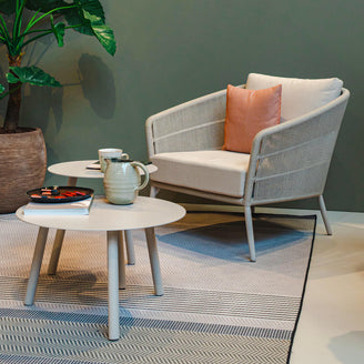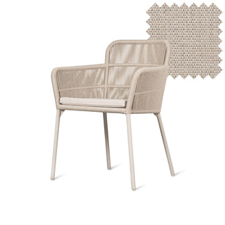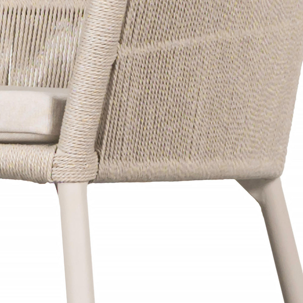 The dining chair is made using all weather acrylic rope in a soft flax colour over the powder-coated frame which is in a soft Dune White colour.