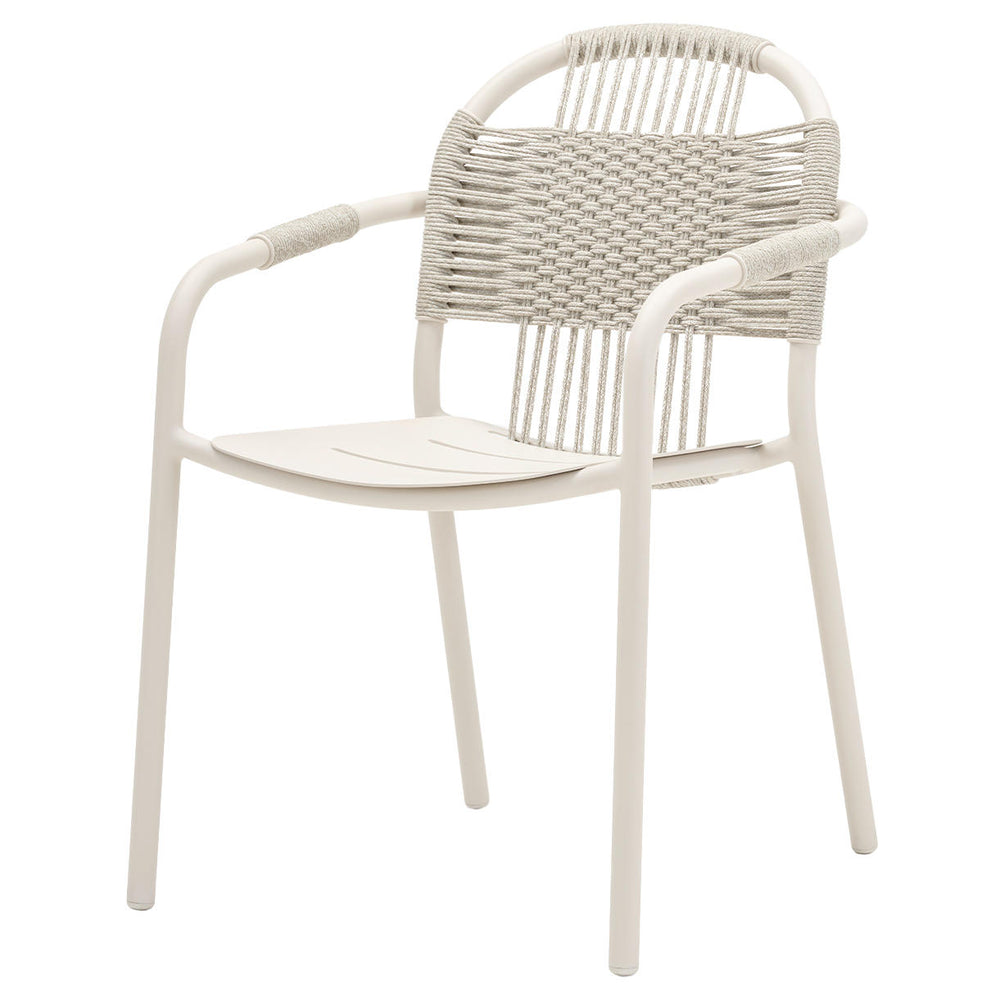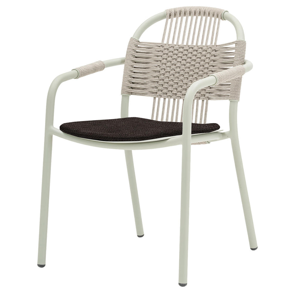 Woven polypropylene rope creates the characteristic back of the chair and it is woven around the armrests to give an extra degree of comfort.
