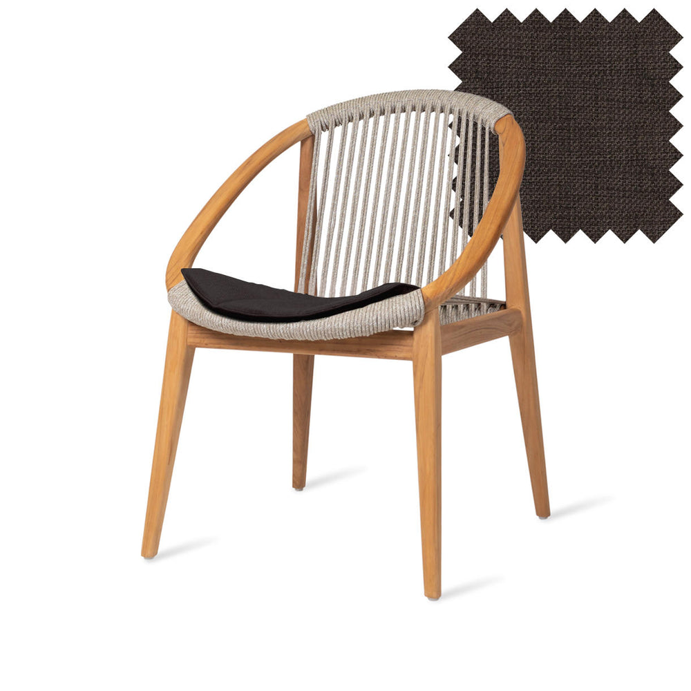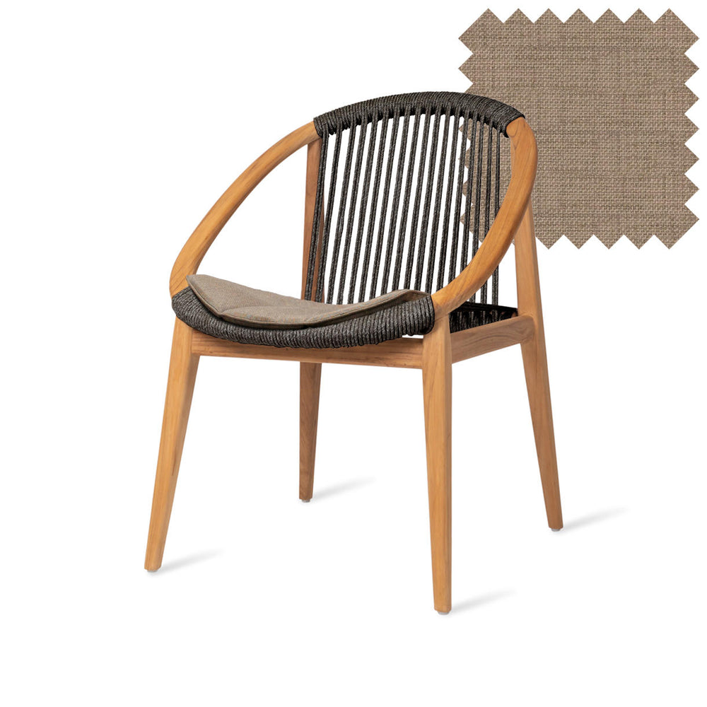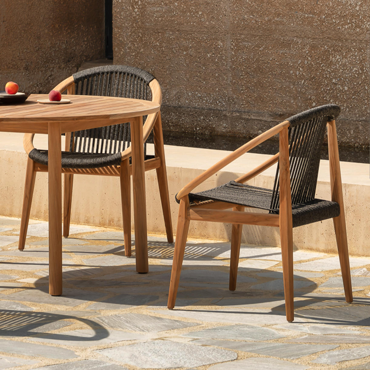 The natural teak frame used outdoors will turn into a soft, silvery grey which will contrast beautifully with the acrylic rope.