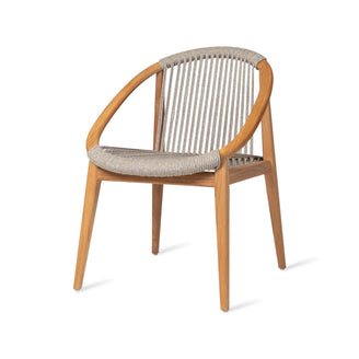 The Frida dining chair keeps Frida's unique shape intact while blending tactile elements with a light, Scandinavian design. Its solid teak legs and rounded frame provide robust support for a lovely seat crafted from tightly-woven rope.