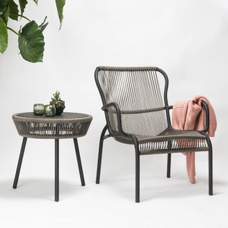 Made using an aluminium powder-coated frame with a synthetic rope the furniture is comfortable, robust and weather resistant.
