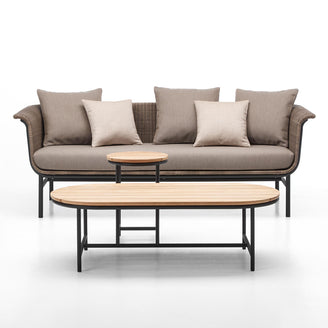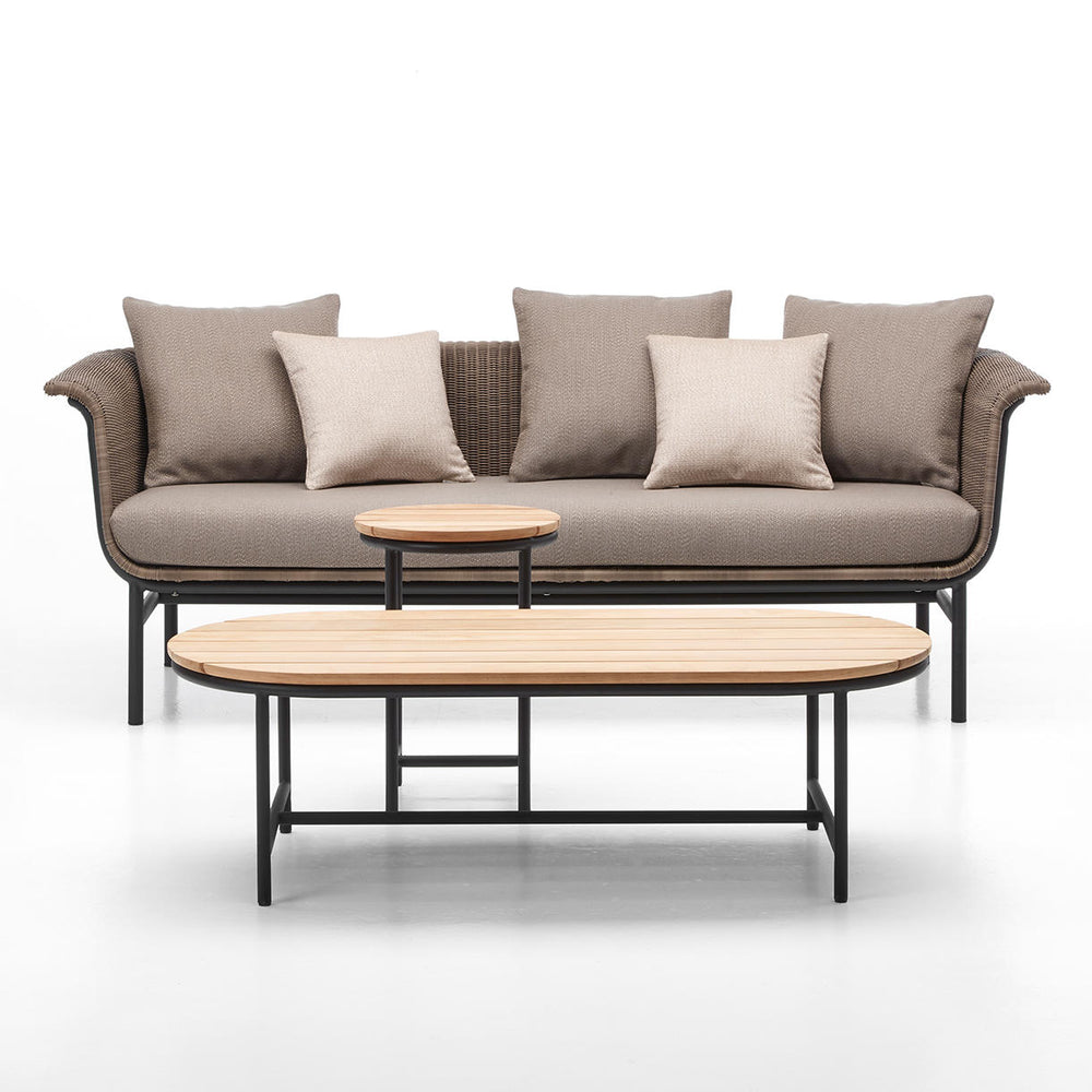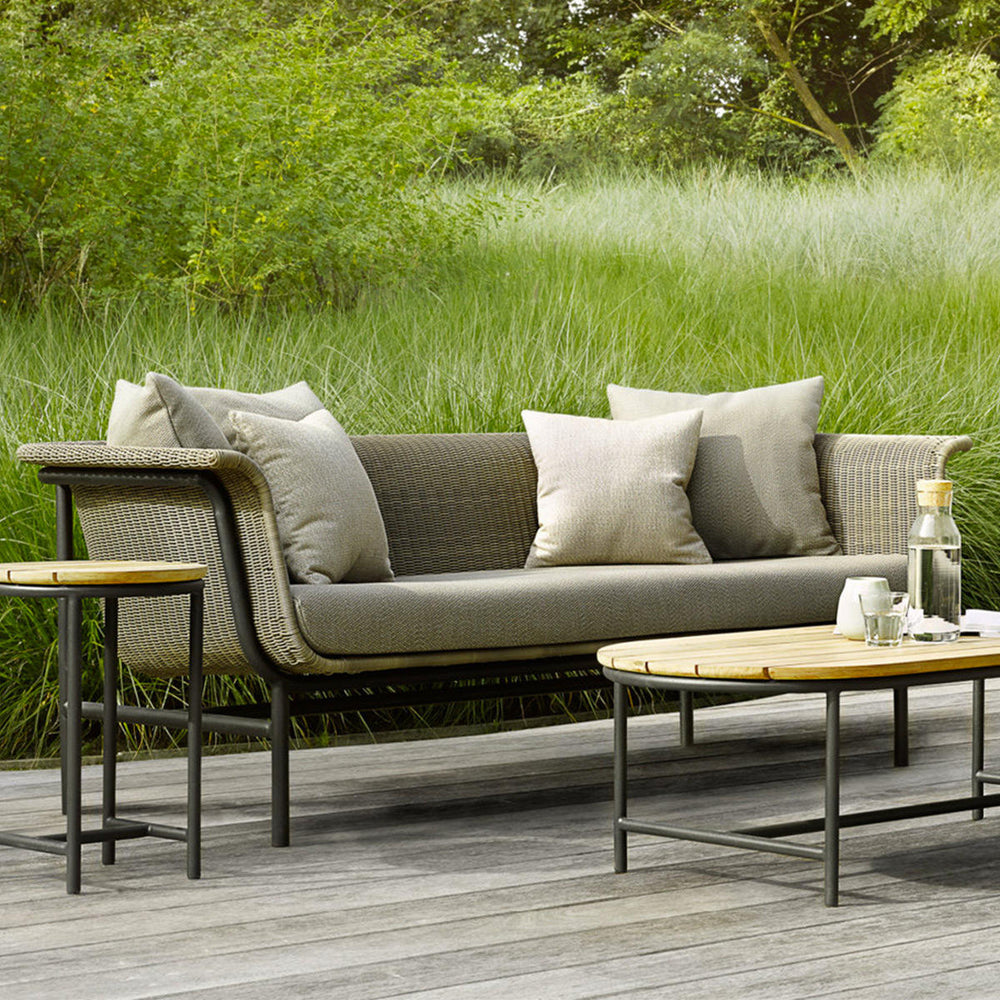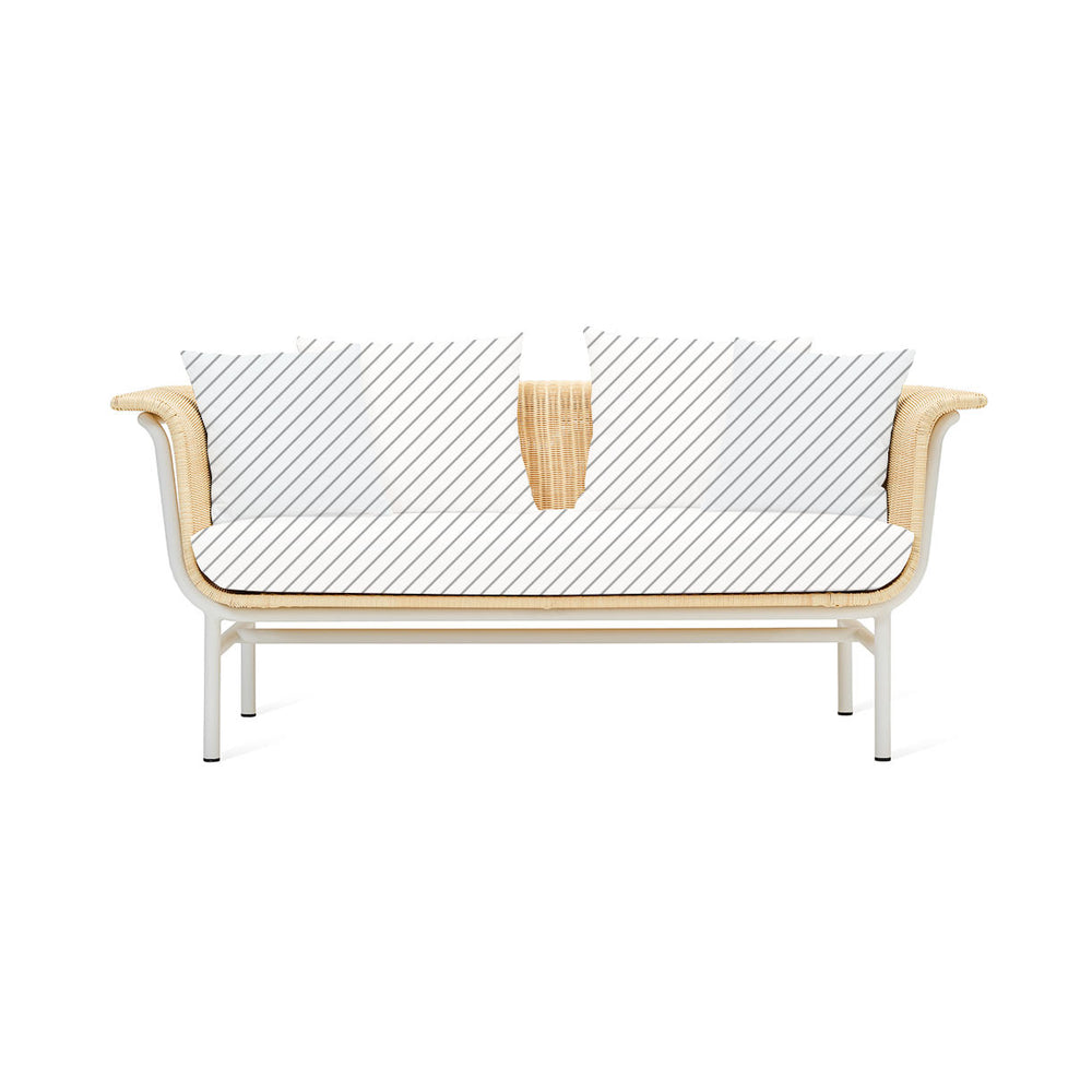 The soft curves of the 2 seater sofa allows you to relax in style and comfort. The combination of the warm wicker and the on trend powder coated aluminium frame allows a conversation between the craftwork on one hand and the industrial processes on the other.