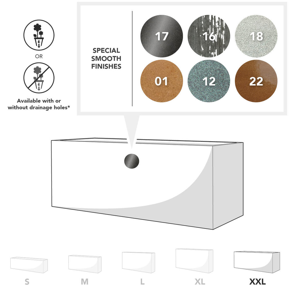 The planters are available in a variety of finishes - just select your choice from the drop down menu to see thumbnails of the finish. You might also wish to examine them in more detail by exploring all our finishes below: