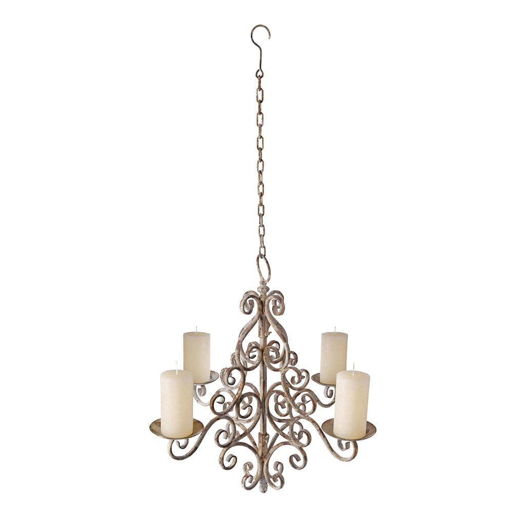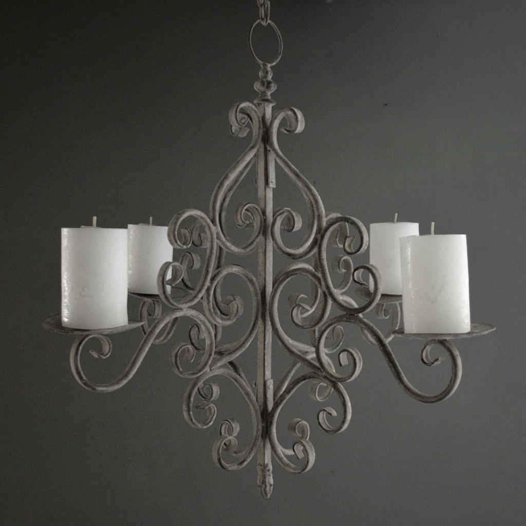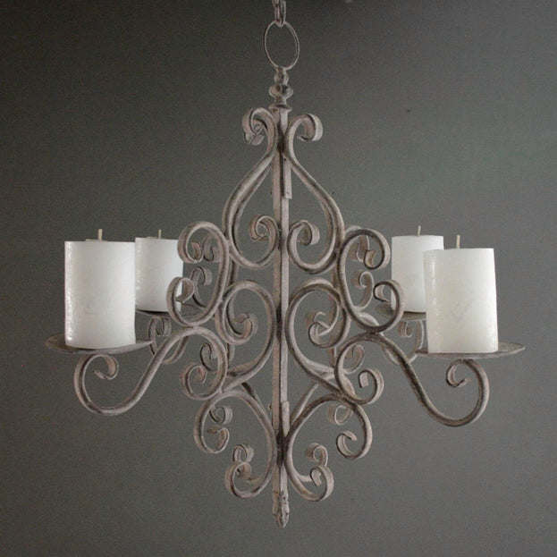 The white and grey rustic candles give this chandelier the perfect finishing touch.