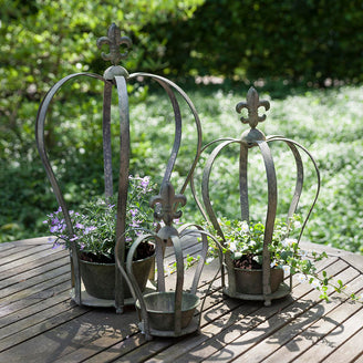 A lovely way to display your plants with these rather 'royal' vintage style plant holders. They would make a lovely gift for someone, with a pretty pot of herbs or bulbs popped in each planter.