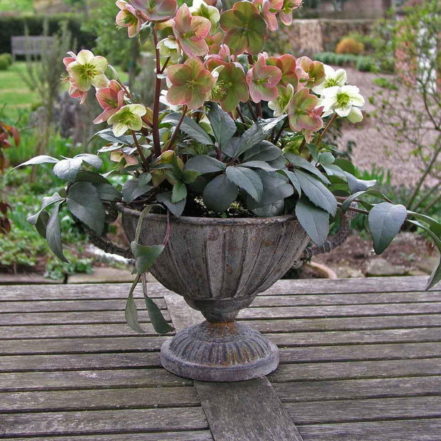Can be potted with bulbs, hellebores or even a simple lavender.