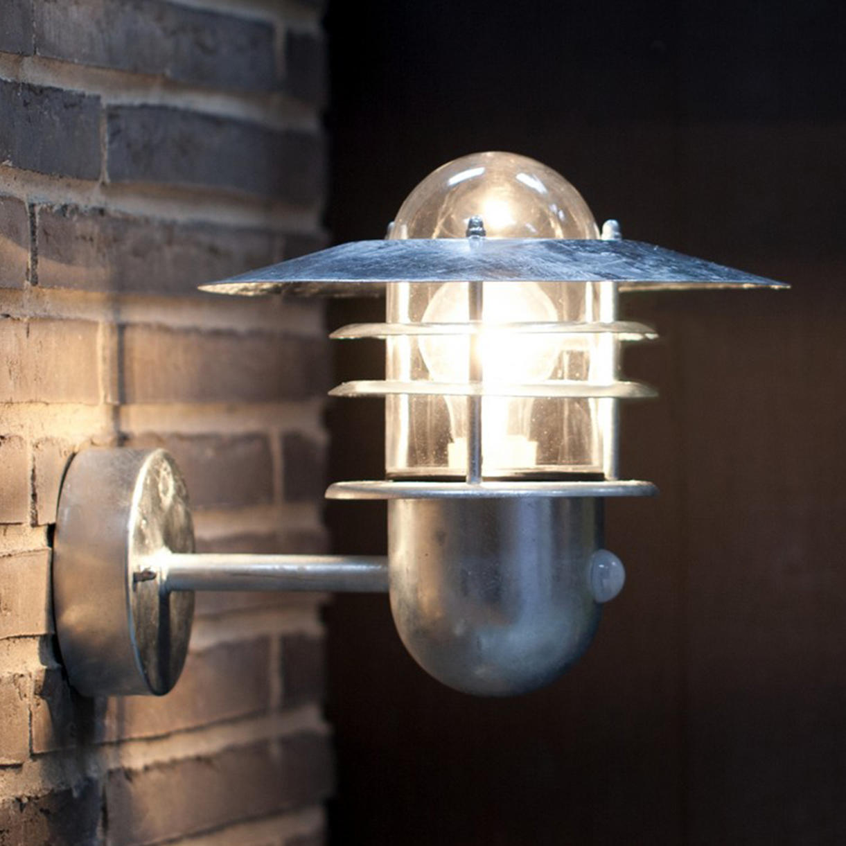 With a hint of Scandinavian styling, this outdoor wall light is made from galvanised steel, and comes with a glass lens. The light has a PIR motion sensor which, once activated, will turn the light on for one minute. The range of sensitivity for this sensor is between 100 and 110 degrees.