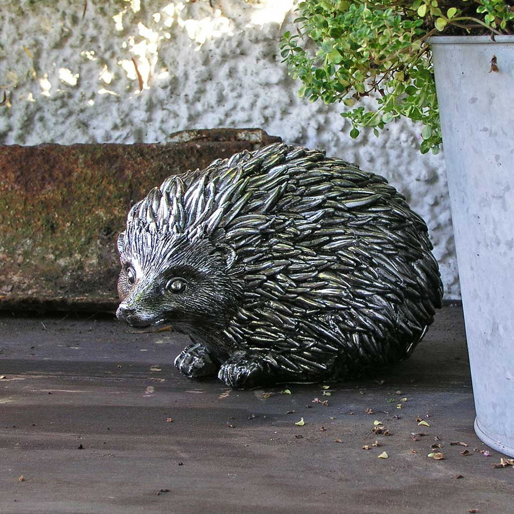 Made from resin with a silvered finish this life-size hedgehog will just love rooting around in the garden but if you prefer he will be just as happy in the cosy confines of home.