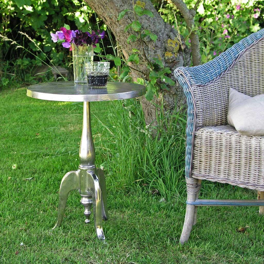 Made from beaten aluminium, this great occasional table is just as much at home in your conservatory or garden room as it is outside.