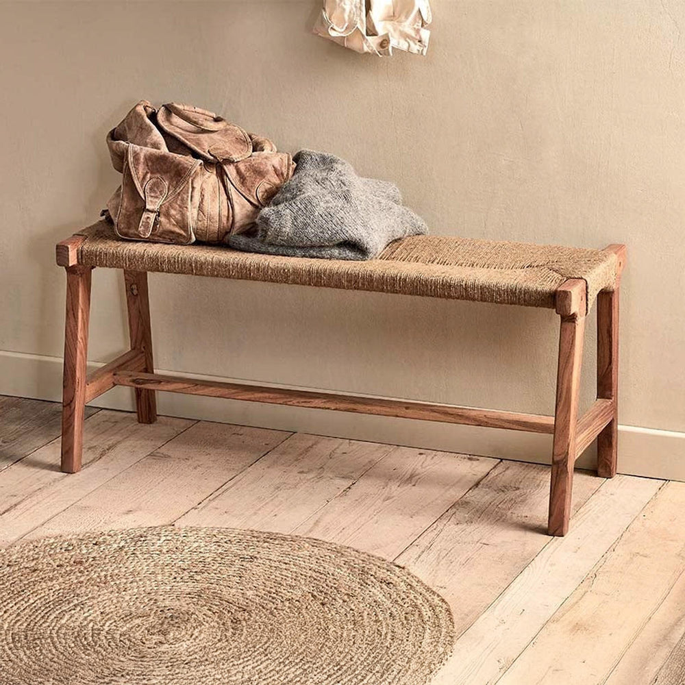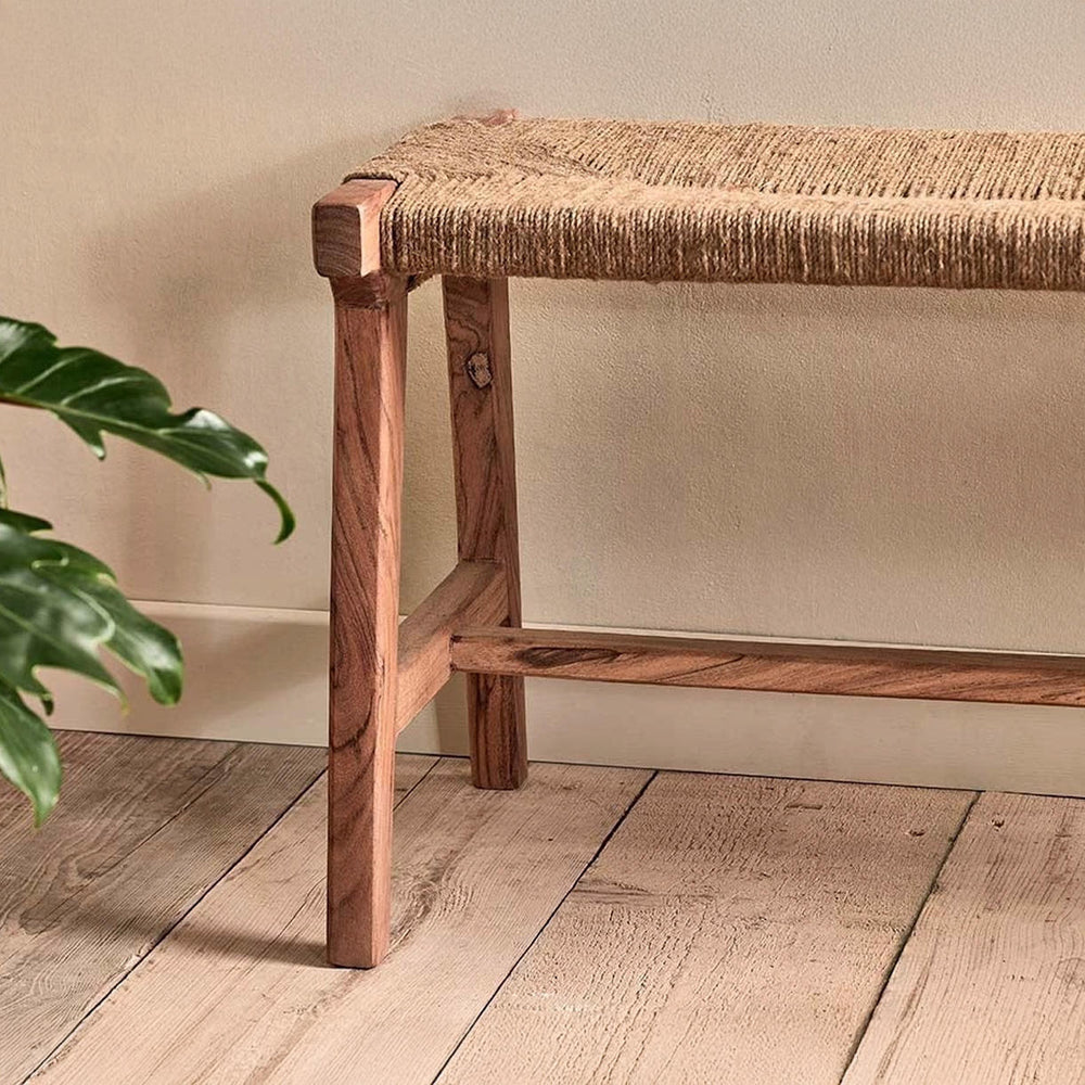 The warm acacia wooden frame is enhanced with the seat finished in woven jute.