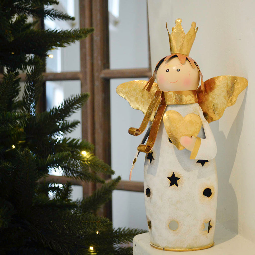 Made from metal and painted in white and gold, this delightful angel tea-light holder looks lovely on a window sill or mantle-piece.