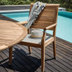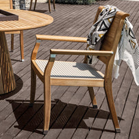Try the Arlington dining chair with either the Clipper dining table as shown here or with the Buffed teak Whirl dining table, by Gloster.