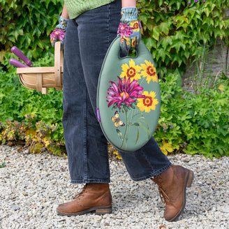 Super comfortable garden kneeler with memory foam technology, the Kneelo is in a soft sage green and features an Asteraceae design of China Aster and Coreopsis from the RHS Lindley Library collection of historic botanical art.