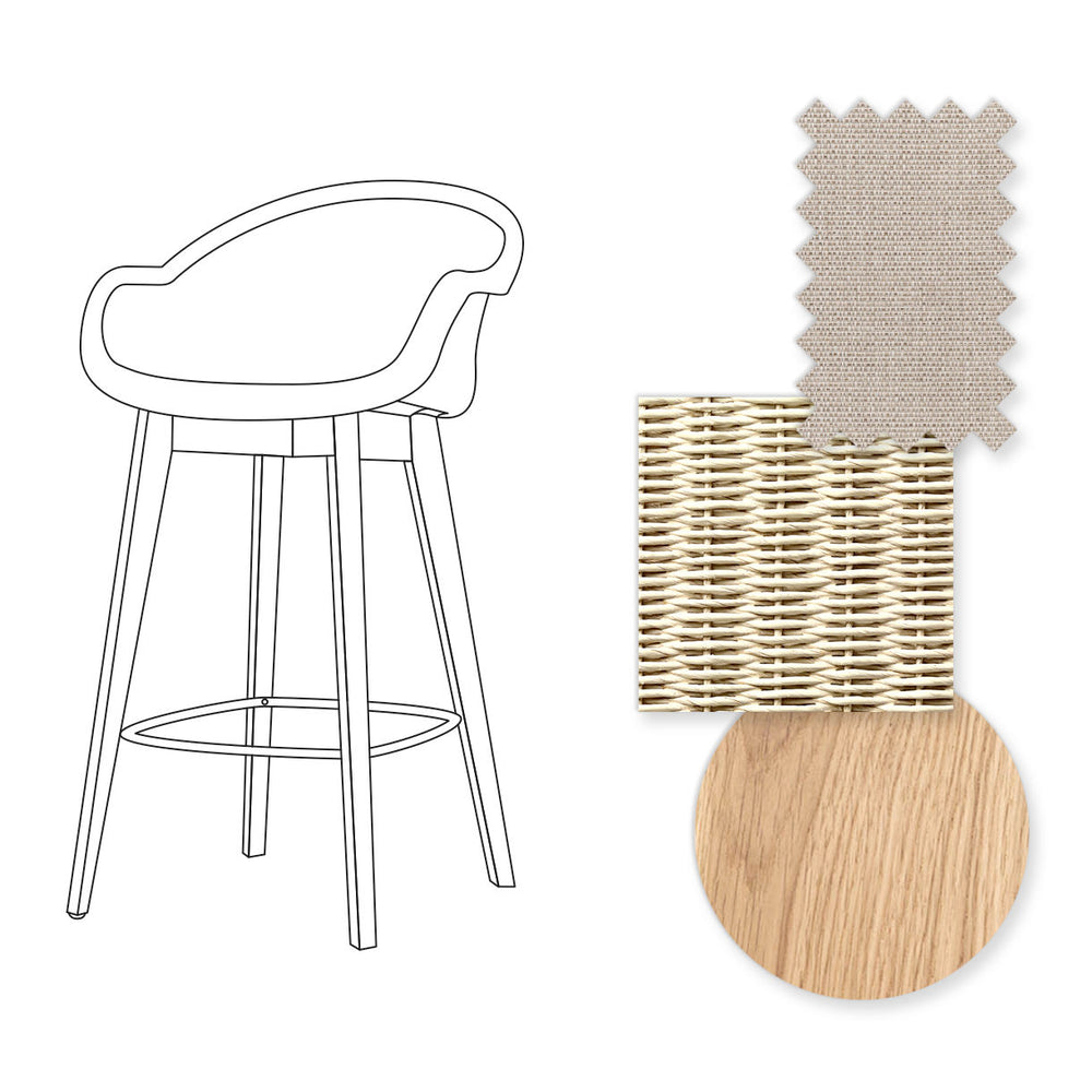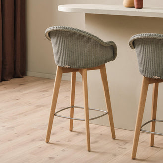 The Avril collection forms part of the Indoor Vincent Sheppard range of furniture. The seats of the stools are made using Lloyd Loom weave which is made from twisted Kraft paper spun around a steel wire. Highly skilled craftsmen shape the loom to the natural oak frames by hand, thus producing a smooth and attractive finish that will, unlike normal wicker, not snag clothing or skin.