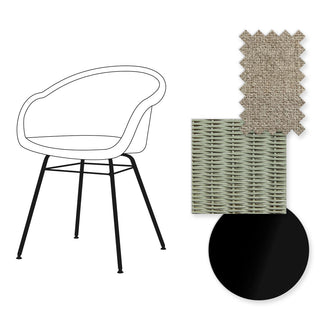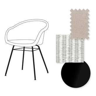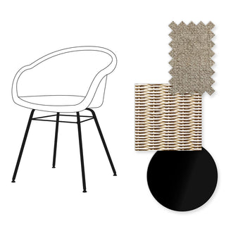 Each chair is hand made in classic Lloyd Loom using techniques dating back to 1917. The chairs are shaped and curved for optimum comfort, with sleek steel legs in black to complete the look. Seat pads are available to order separately.