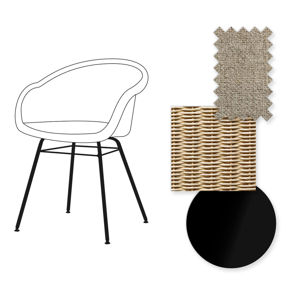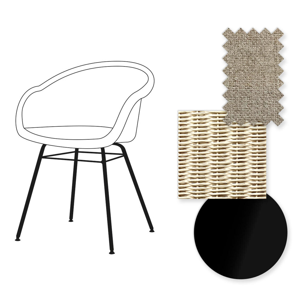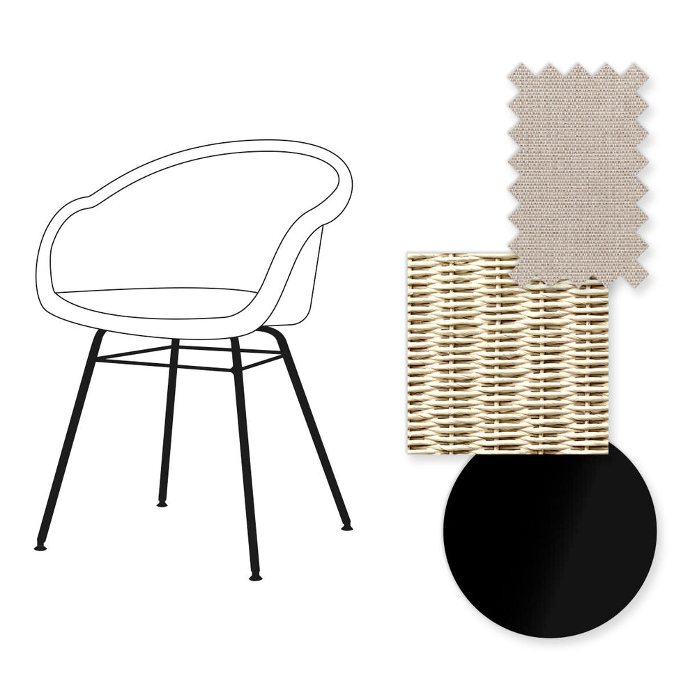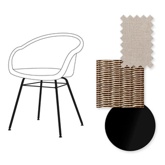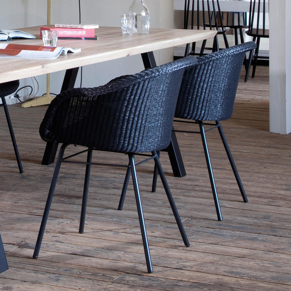 The Avril dining chair with a black steel frame gives a contemporary twist to this timeless Lloyd Loom dining chair.