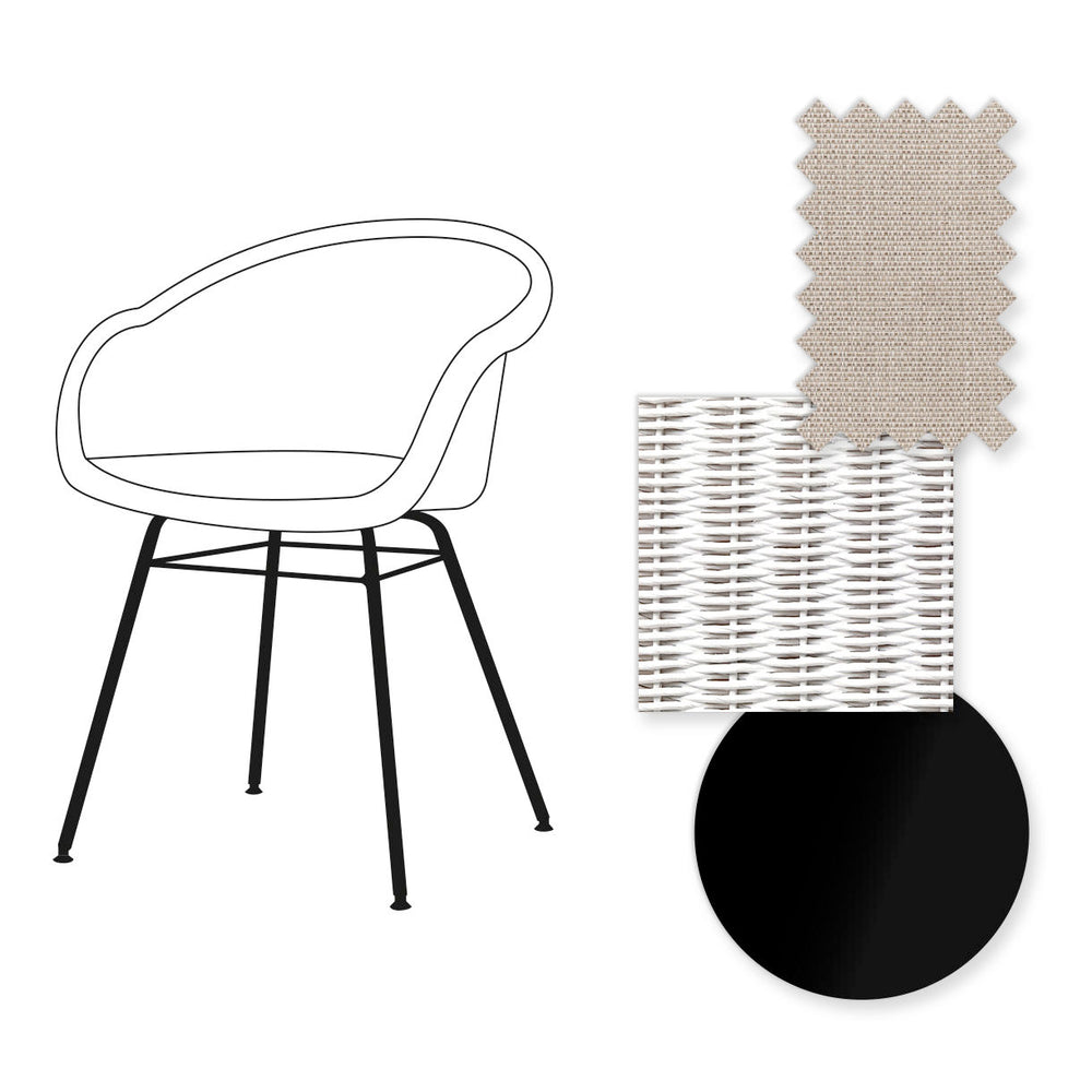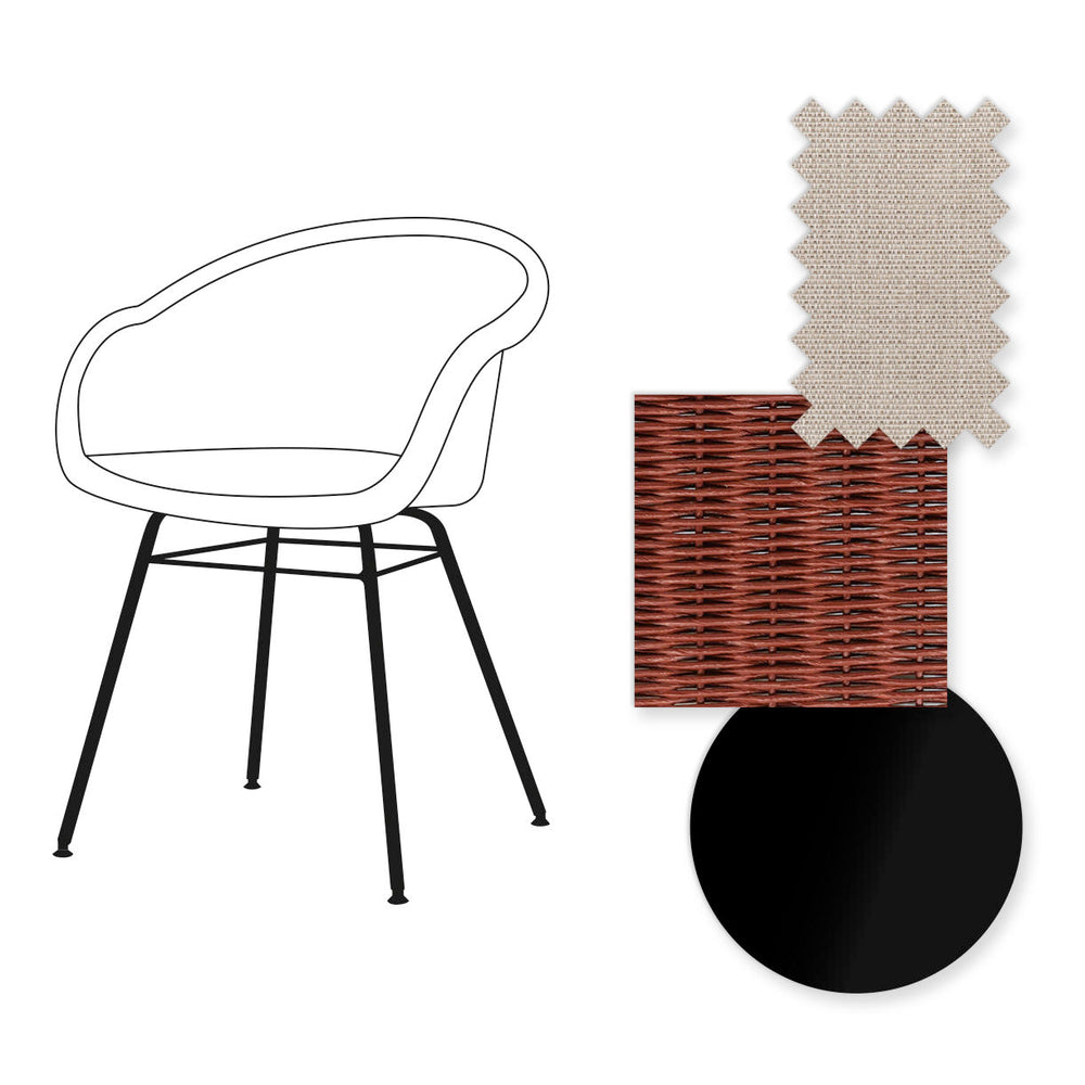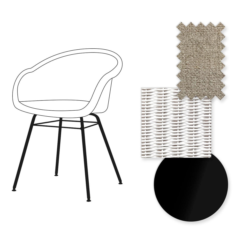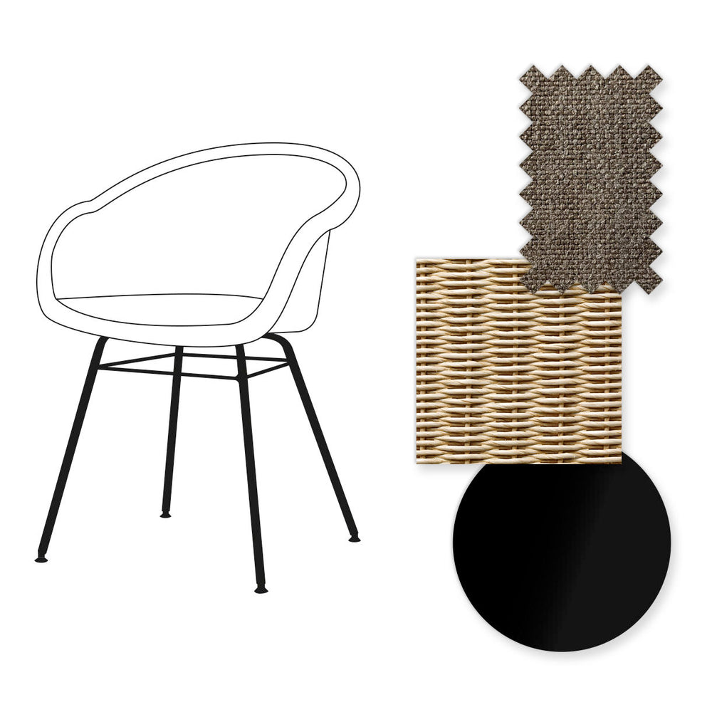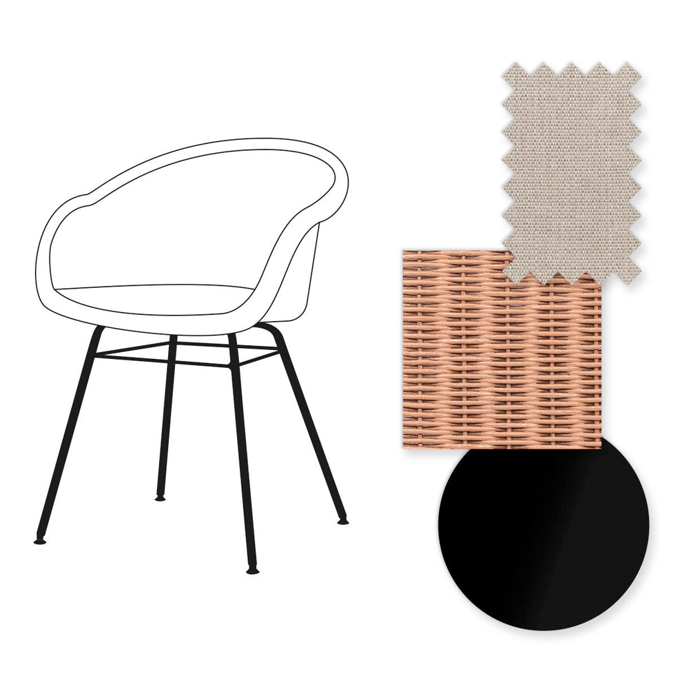 The Avril dining chair with a black steel frame gives a contemporary twist to this timeless Lloyd Loom dining chair.