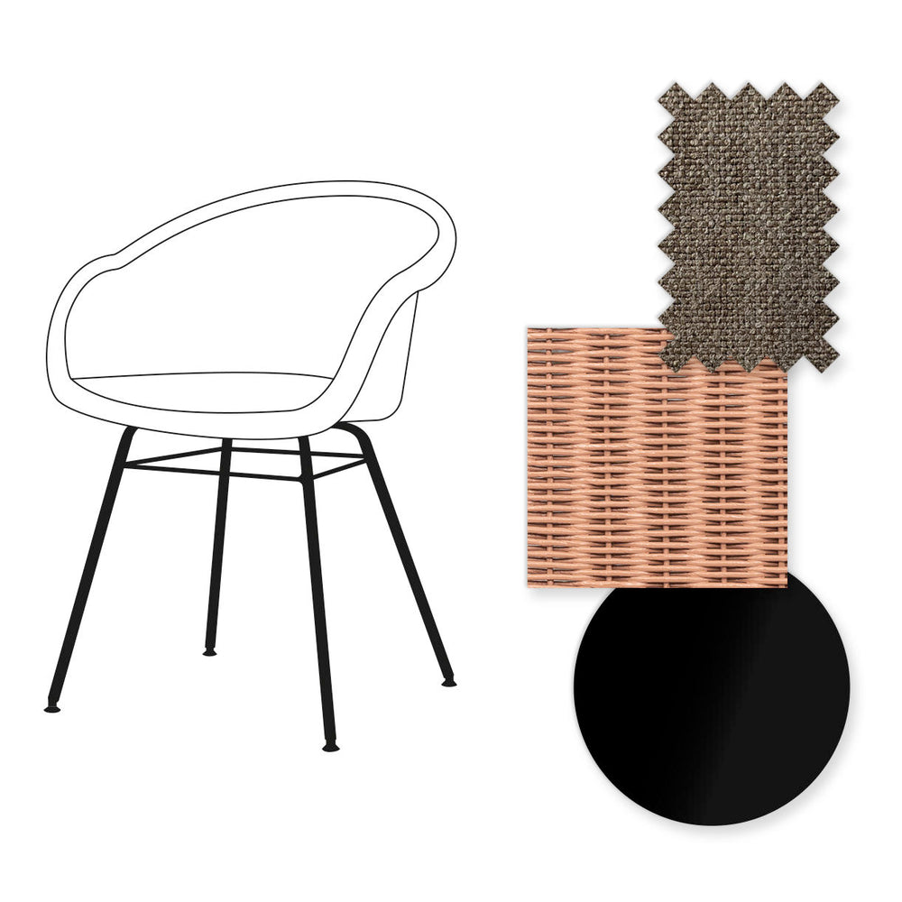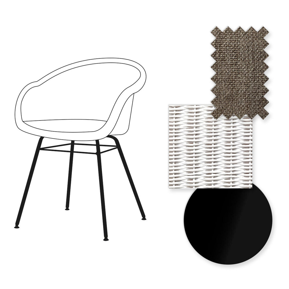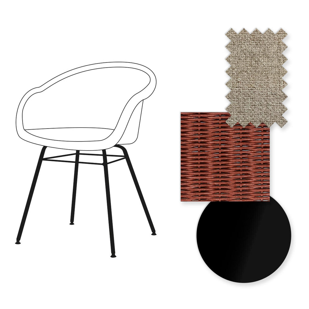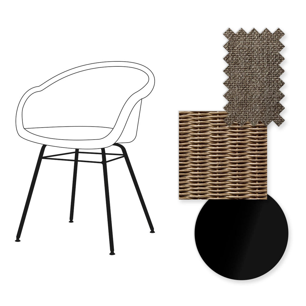 The Avril dining chair with a black steel frame gives a contemporary twist to this timeless Lloyd Loom dining chair.