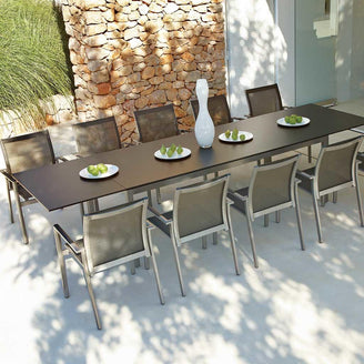 Contemporary styling with lightweight chair frames in powder-coated aluminium.