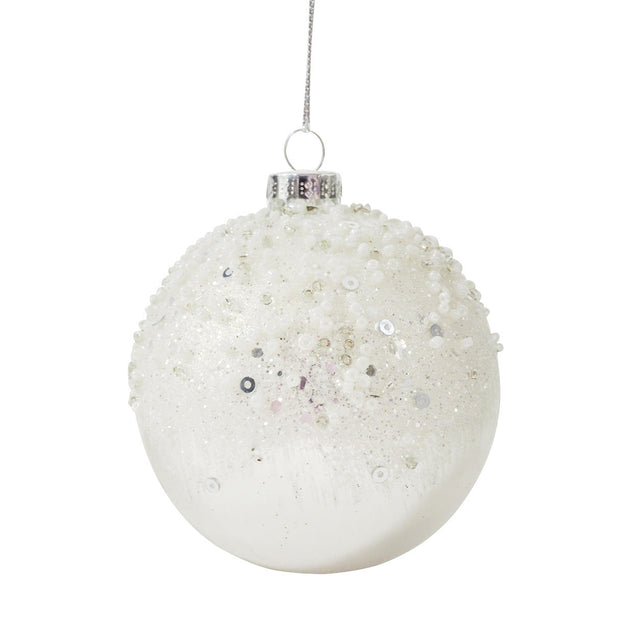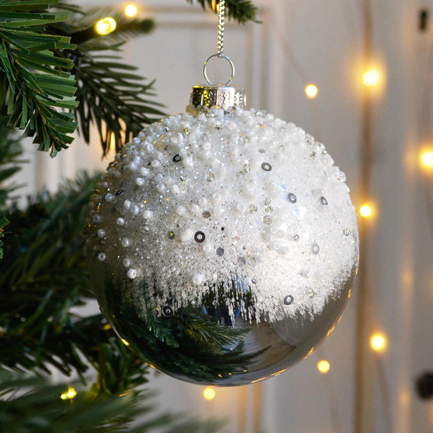 For a truly dramatic sparkly Christmas, this lovely silver bauble decorated with sparkly beads will catch the light and twinkle.