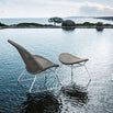 Taking the shape of 2 shells connected almost seamlessly at the join, so the two parts of this chair join at the back to make an extremely comfortable lounging chair.
