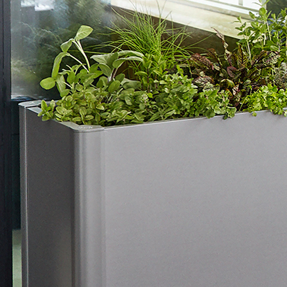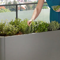 With a stylish design, rounded corners and discreet screw connections, the planter is an elegant and practical addition to a terrace area.