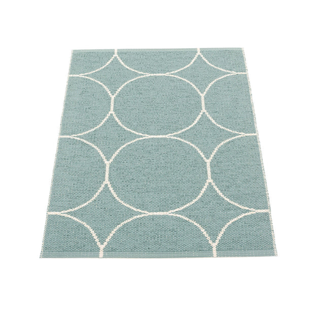 Because of the way the rugs are woven, the Boo rugs with their simple circular pattern are 2 sided, with a reverse pattern showing on the underside - so 2 designs for the price of one.
