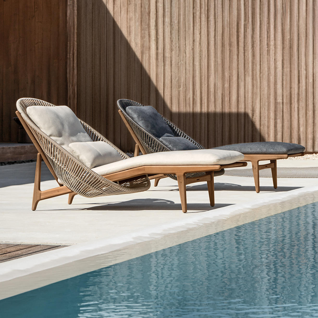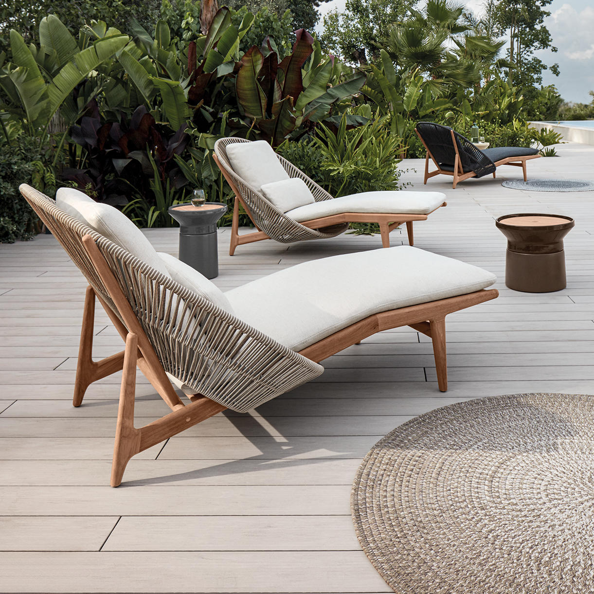 Bora collection by Gloster is a combination of the tactile and the ethereal, the furniture combines the fine craftsmanship of an expertly crafted teak frame with the rounded expression of circles, extended to a soft and inviting seating comfort.