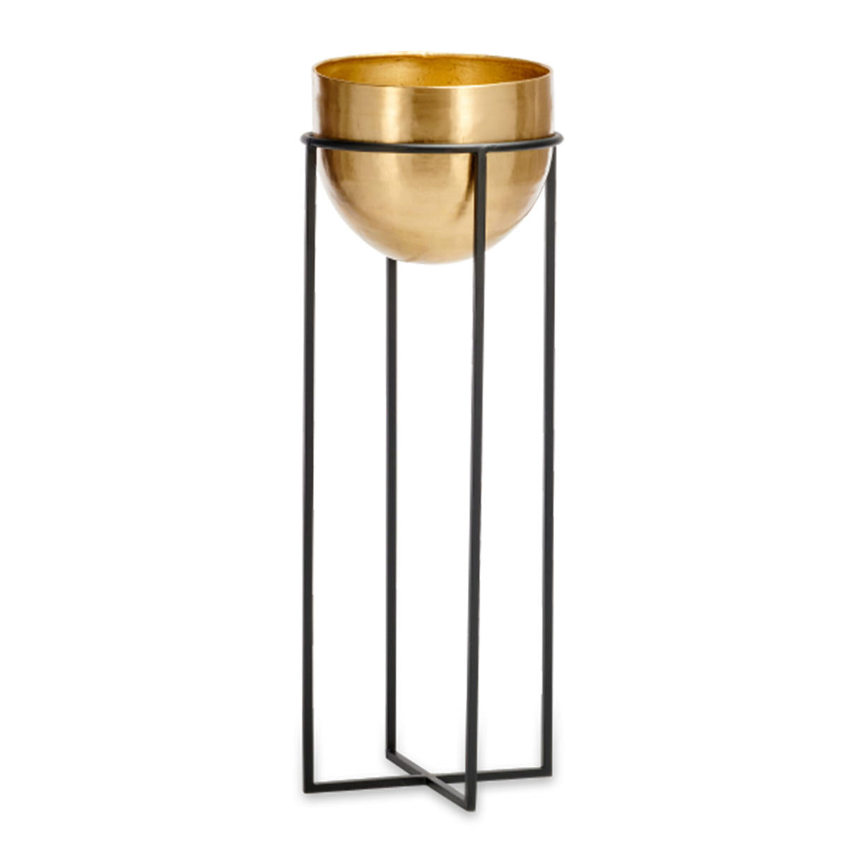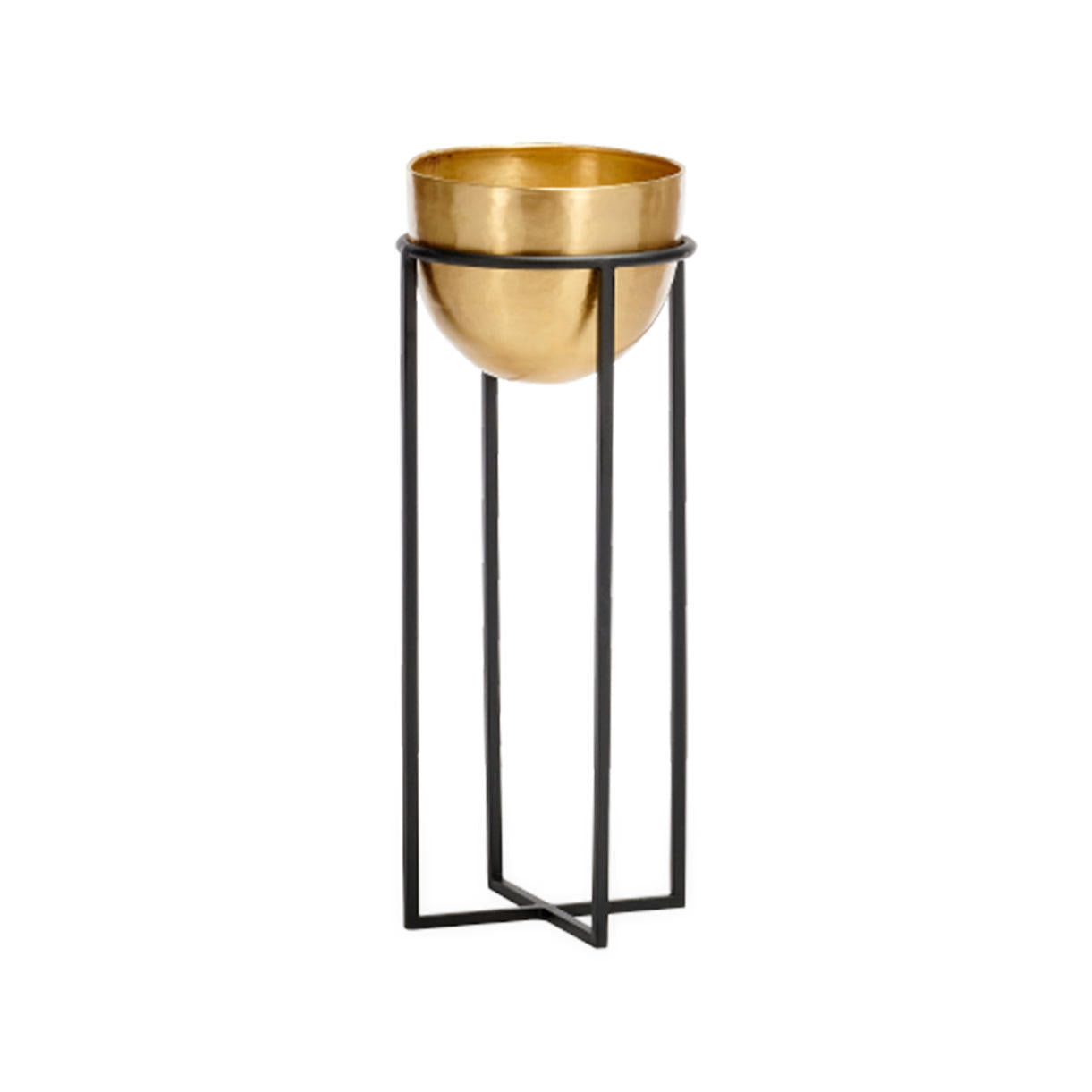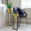 Simple styled brass planters on geometric styled stands.