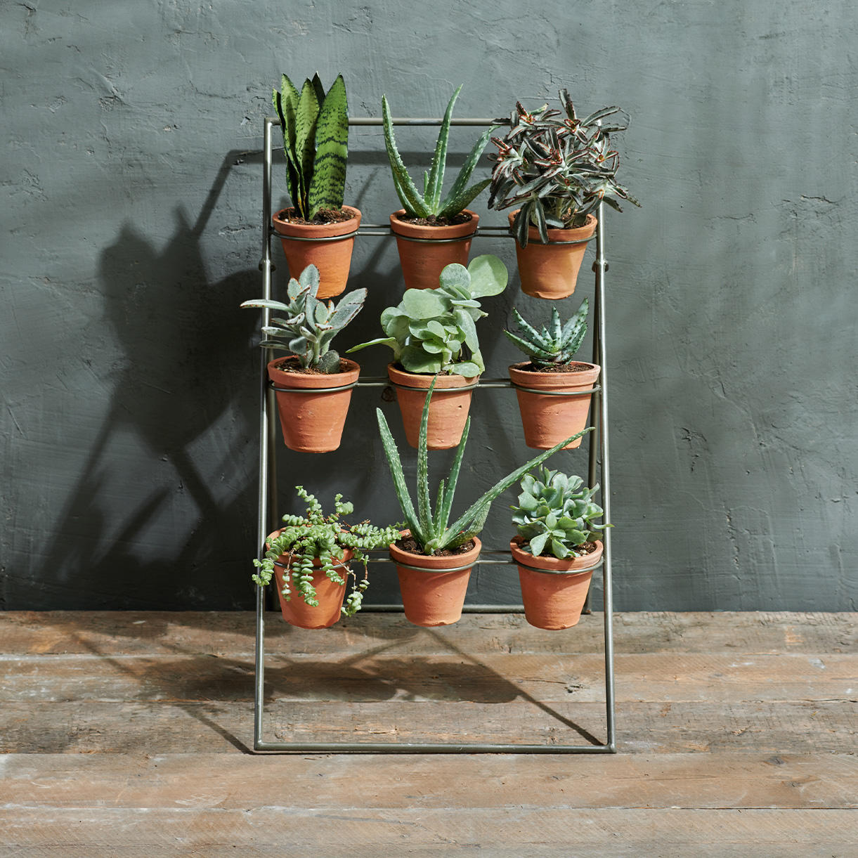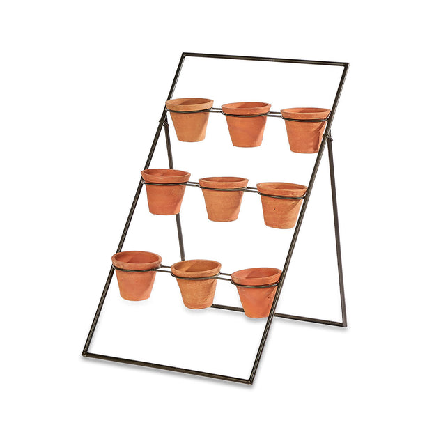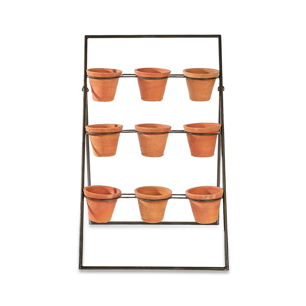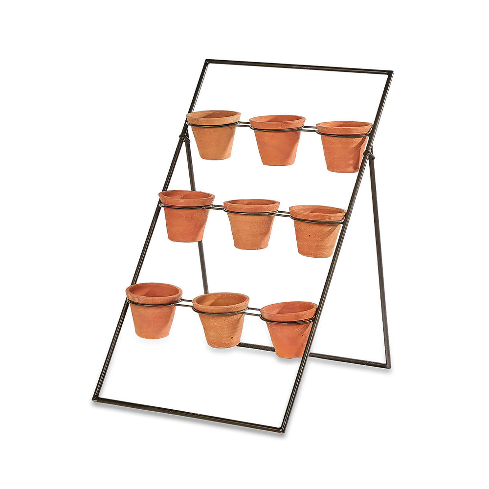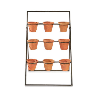 This free standing plant theatre on a contemporary iron frame and traditional terracotta pots is the perfect way to style your plants.