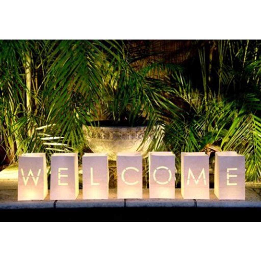 Seven candle bags make the word 'Welcome', to have by your front door to greet guests.
