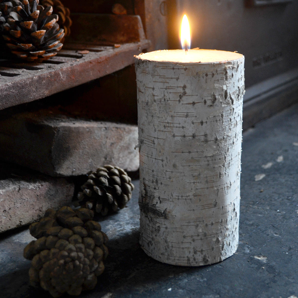 This delightfully simple silver birch candle is perfect grace any mantle-piece or festive table.