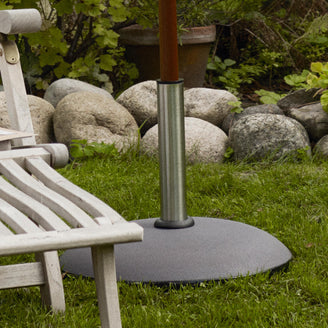 Catania Parasol Base is made from concrete with a simple stainless steel support tube.