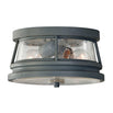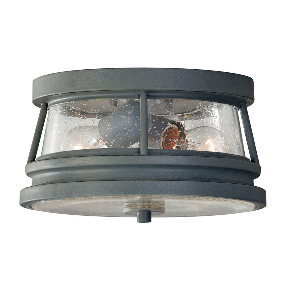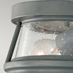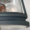 Contemporary, but traditional styled porch lights with storm cloud grey powder coated finish and clear seeded glass lens.