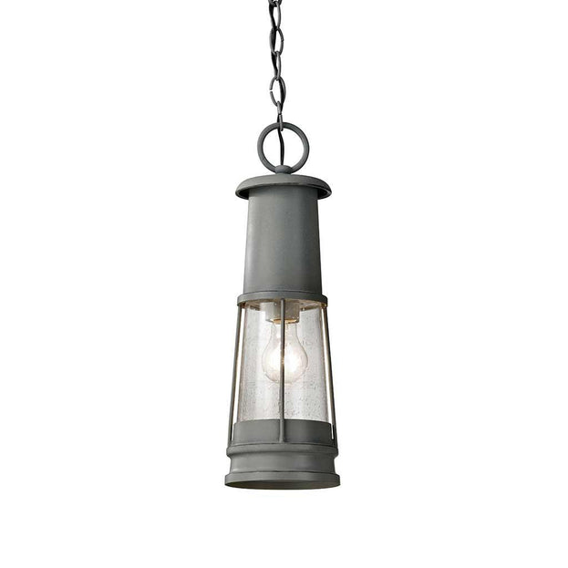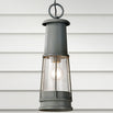 Contemporary, but traditional porch light with storm cloud powder coated finish and clear seeded glass.