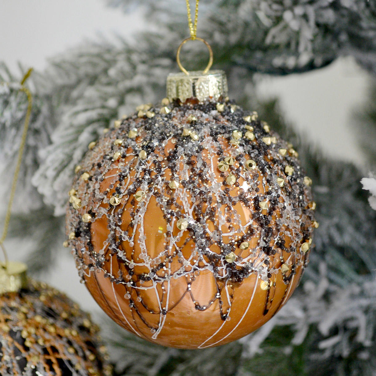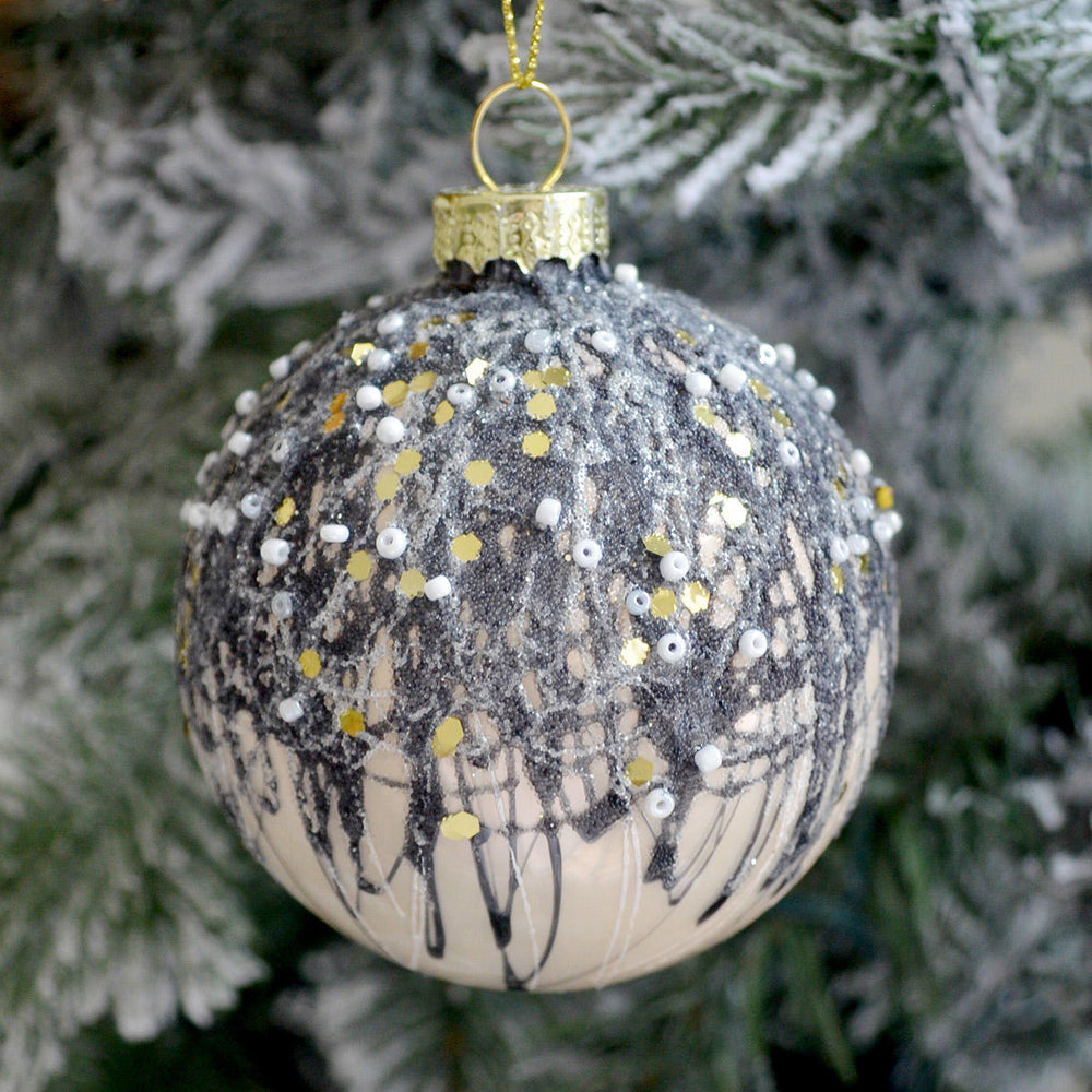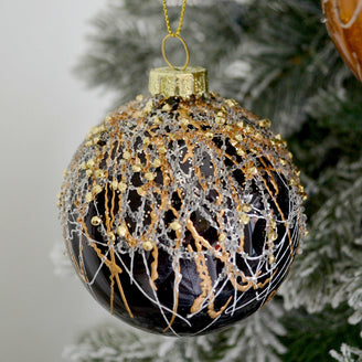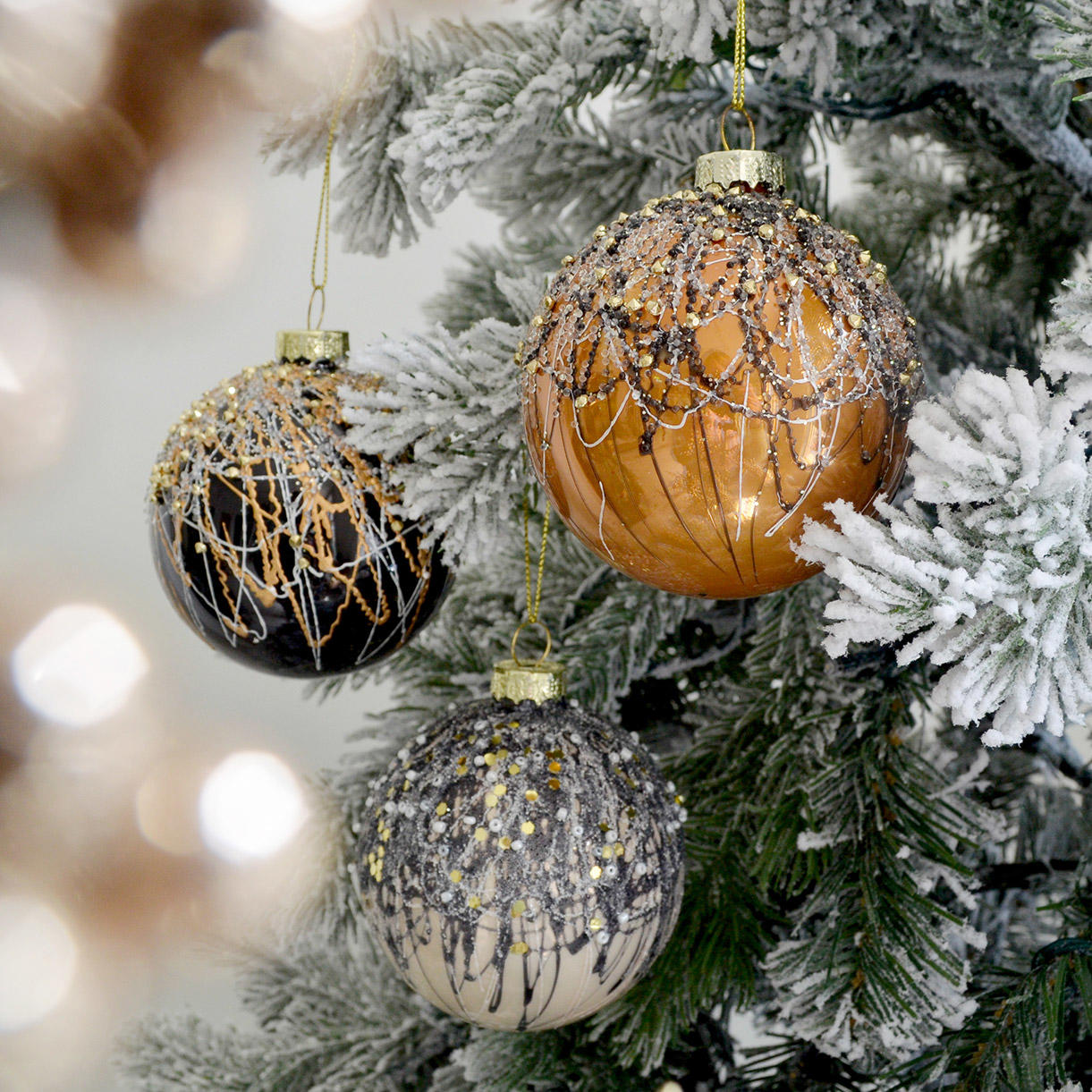The rich colours and drizzle details of these glass baubles are reminiscent of decadent desserts, and will add a touch of sumptuous glamour to your tree.
