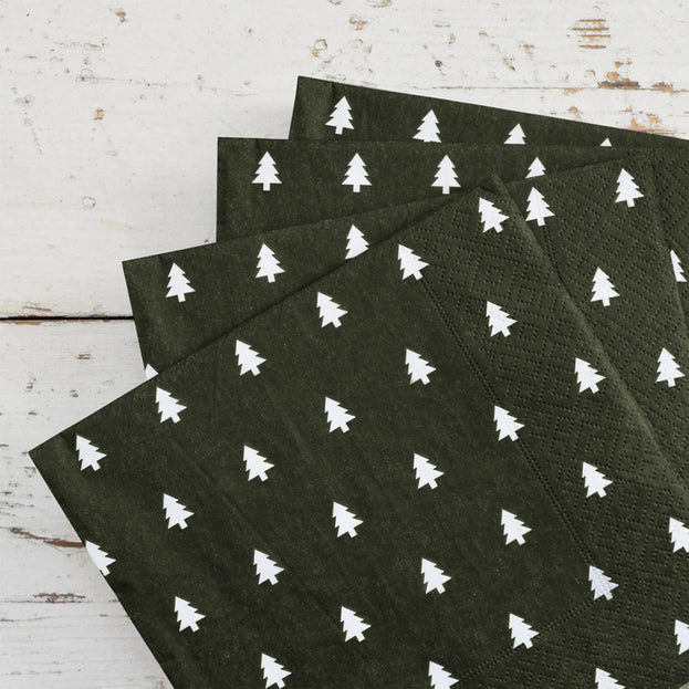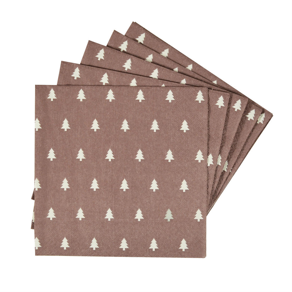 Handy pack of 20 paper napkins with a delightful contemporary tree design, choose from either olive green or soft taupe.