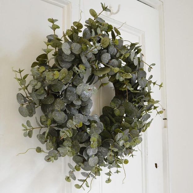With a twist on the standard evergreen or holly Christmas door wreaths.