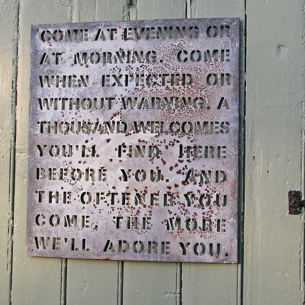 A lovely way to welcome vistors to your house and garden with this delightful stencilled zinc wall plaque.