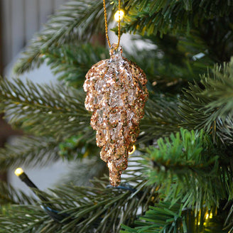 Copper Glittered Pinecone Bauble