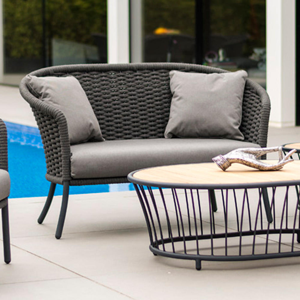 The delightful Cordial collection by Alexander Rose is a gorgeous mix of powder coated aluminium frames with all-weather corded rope weave for soft to the touch comfort.