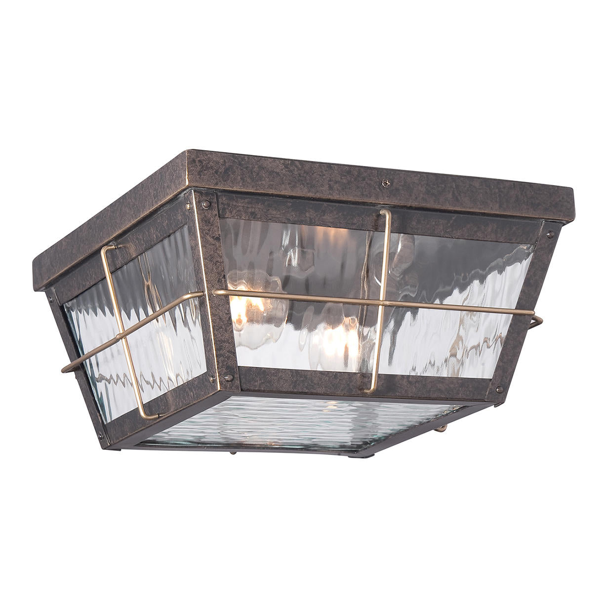 The Cortland lantern has an imperial bronze finish which is the perfect backdrop for its rippling clear water glass lenses. The brass cage accents add that last finishing touch to this Americana inspired outdoor lantern.