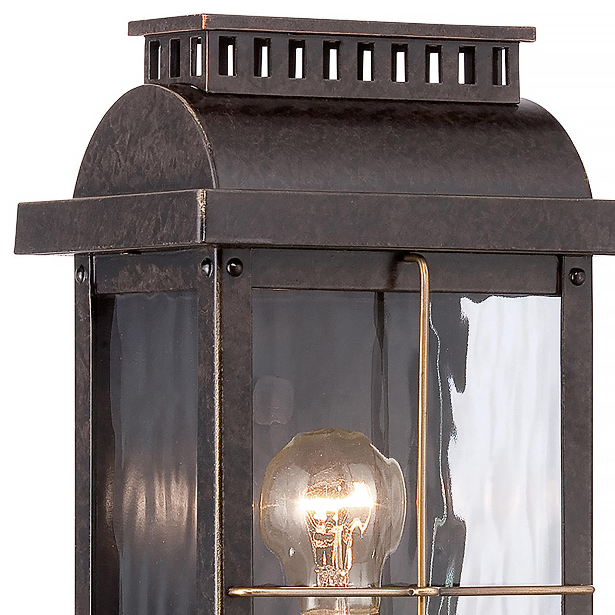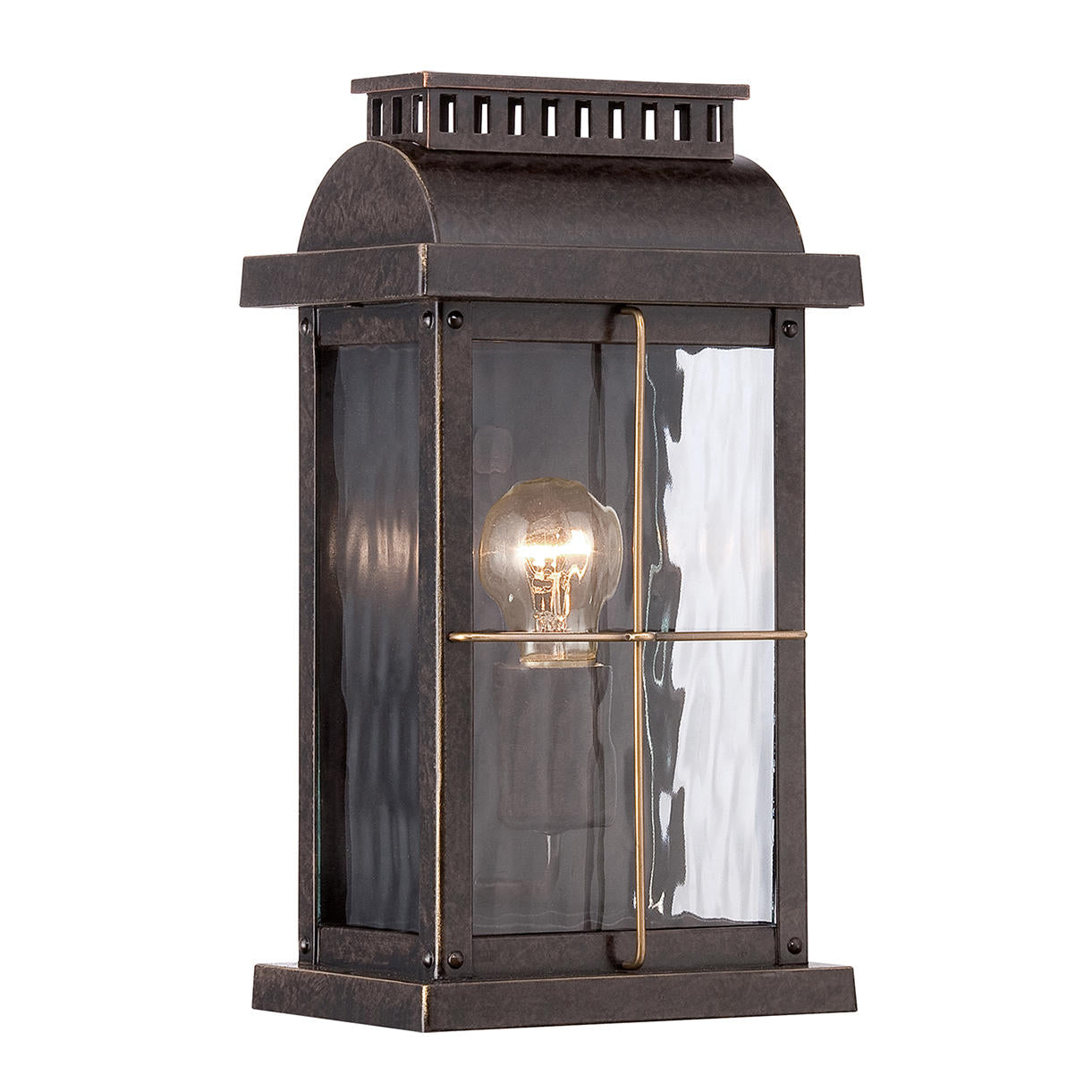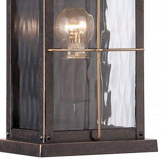 The Cortland wall lantern has an imperial bronze finish which is the perfect backdrop for its rippling clear water glass lenses.
