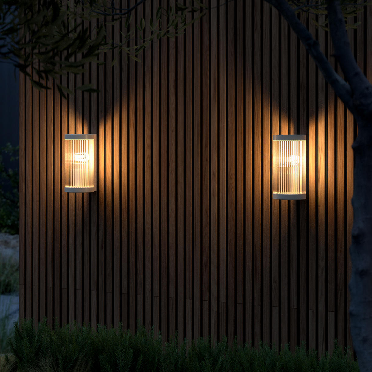 Made in durable, powder coated aluminium the ribbed polycarbonate ensures a pleasant, diffused ambience while casting an interesting play of light.